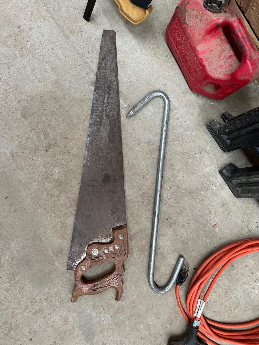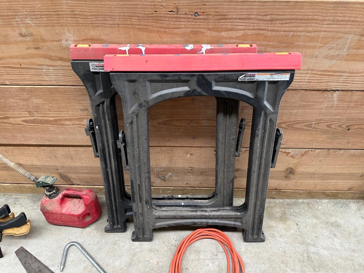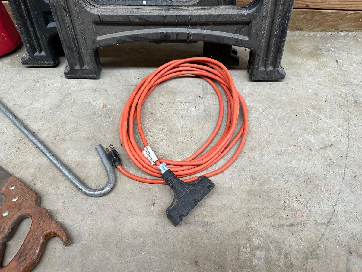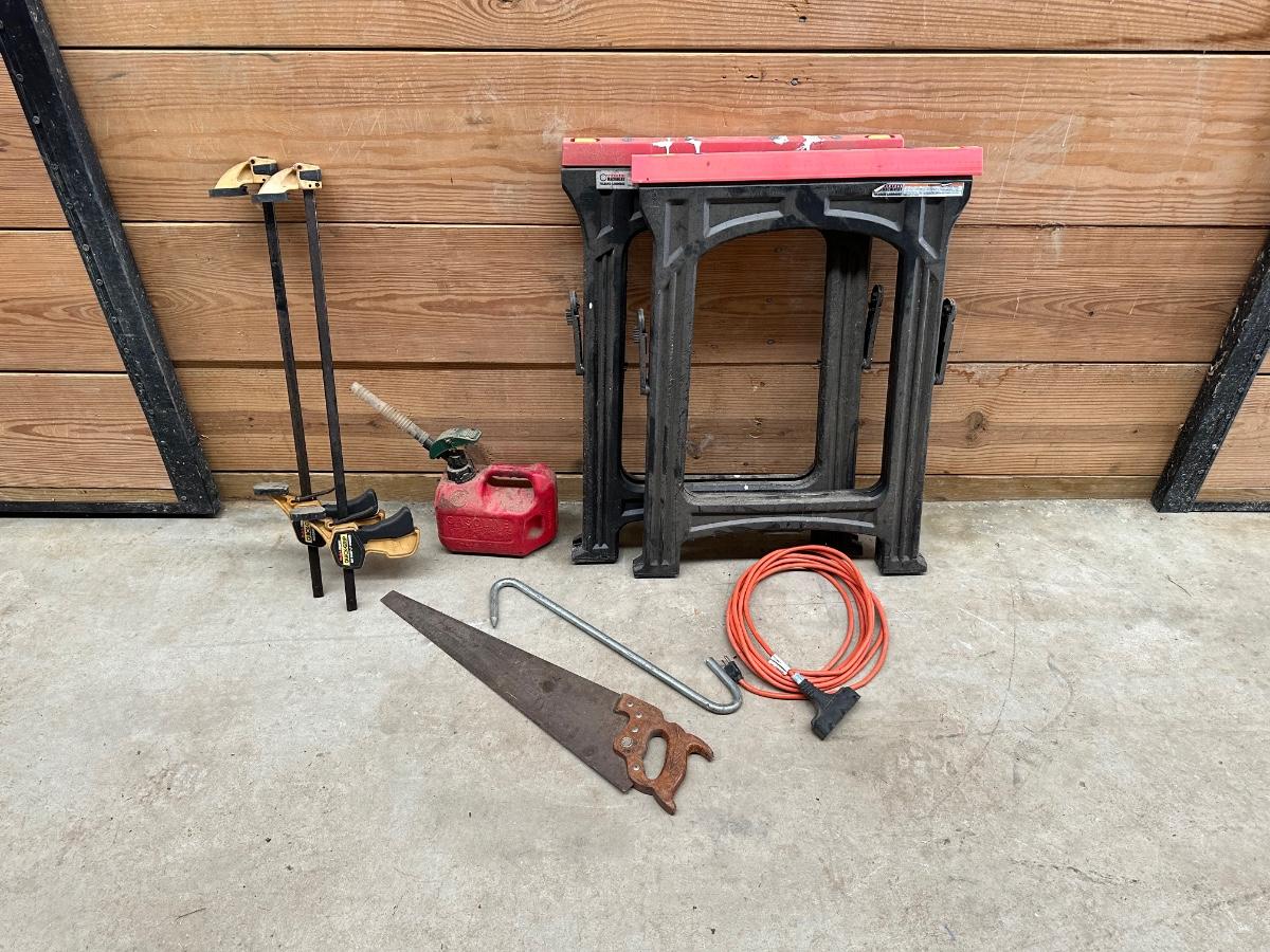 BAR CLAMPS, SAW HORSES, GAS CAN, EXTENSION CORD AND MORE