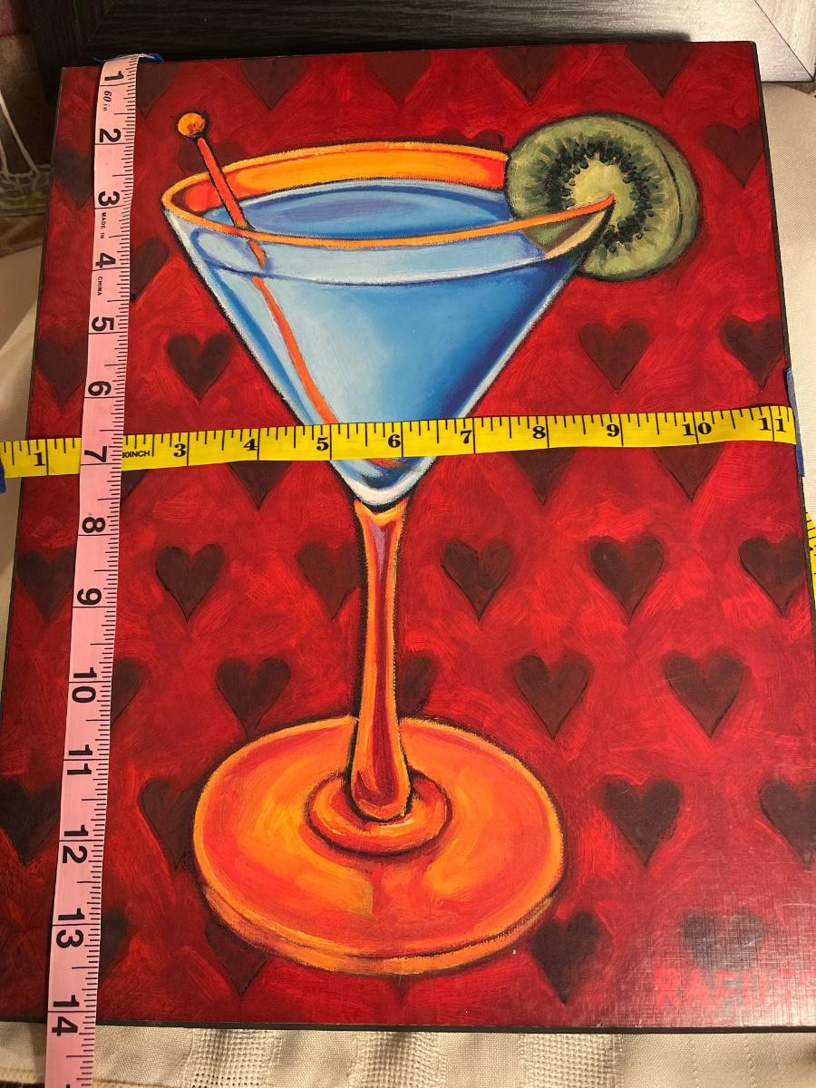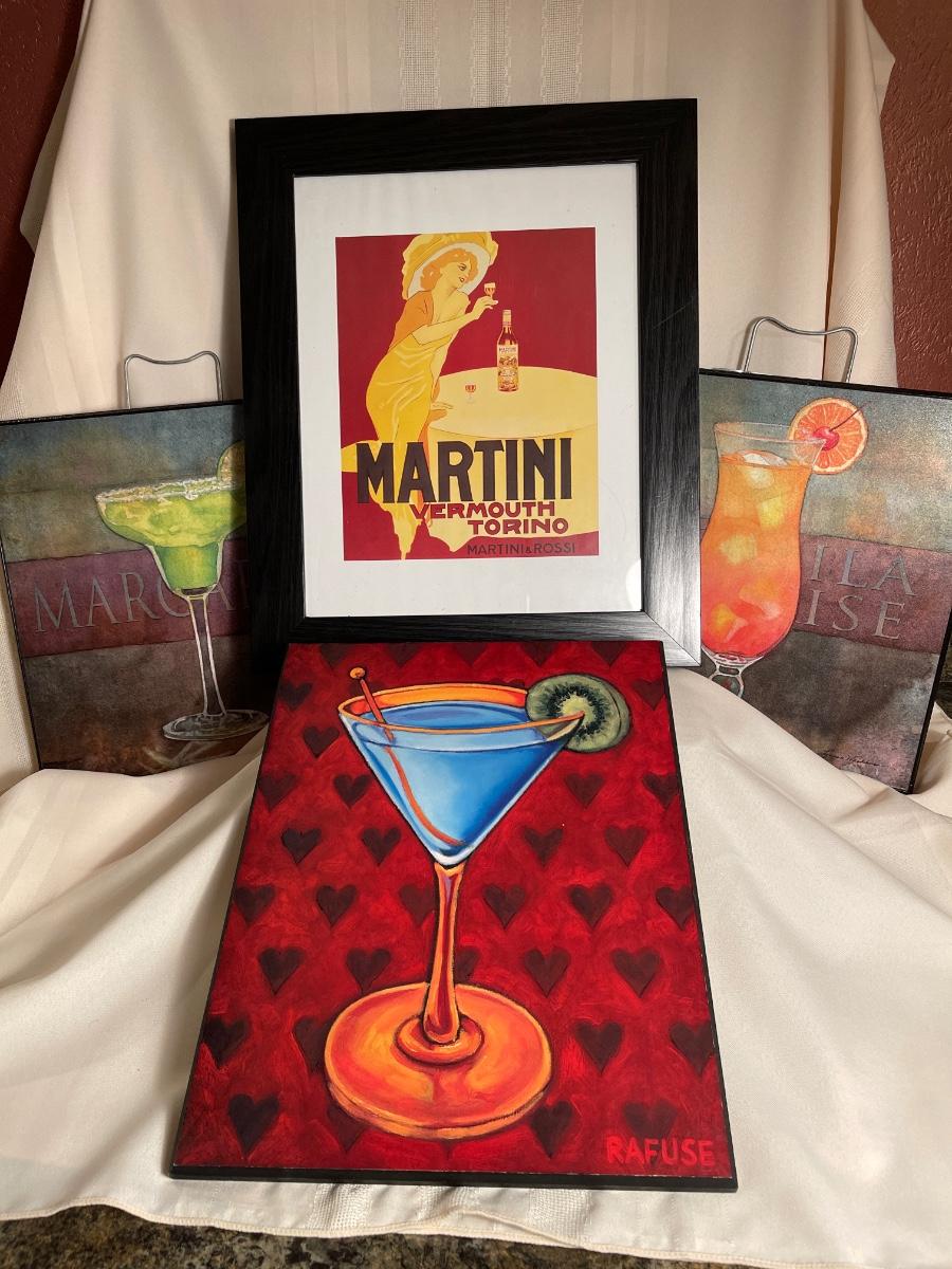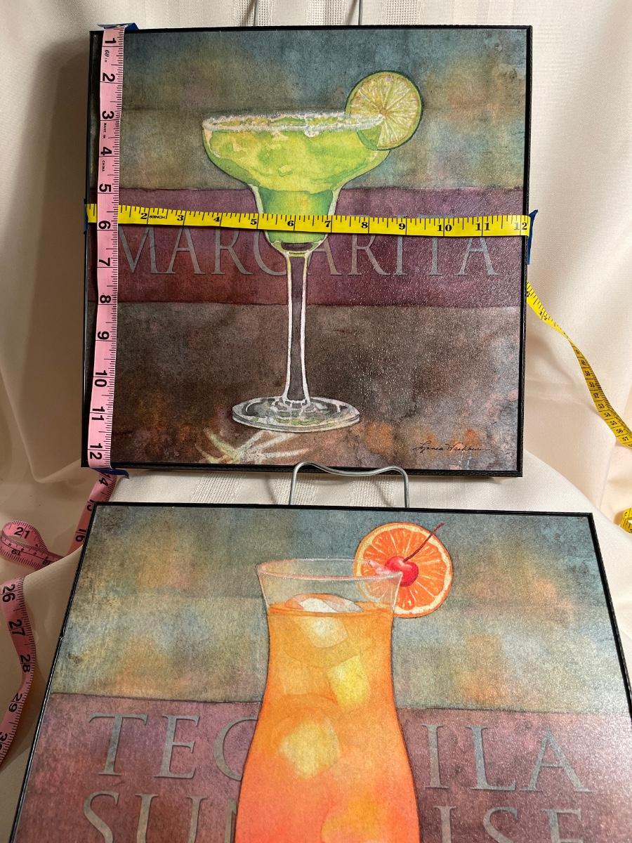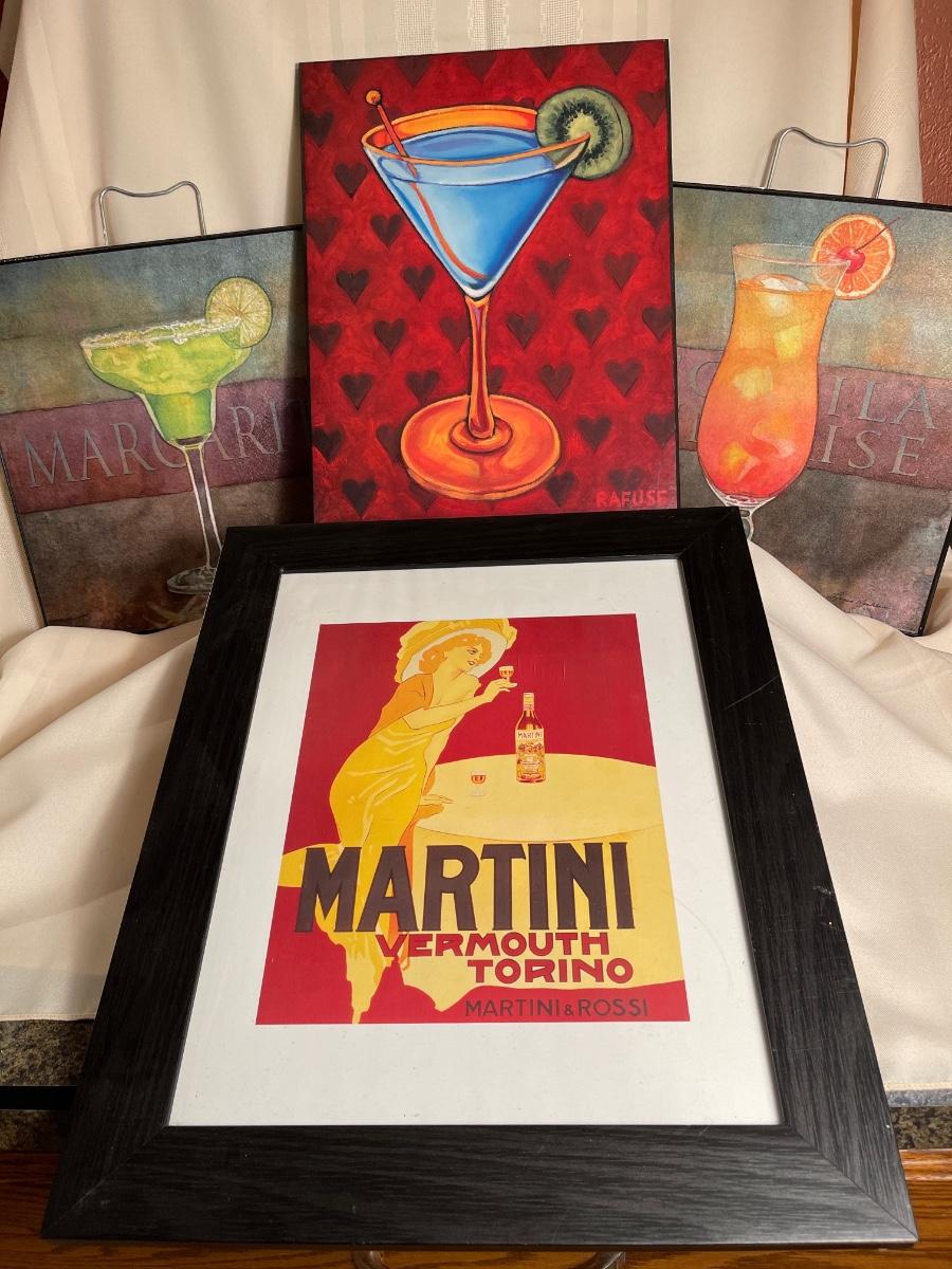 This group has four pictures for your in-home bar. Measurements are on the pictures.