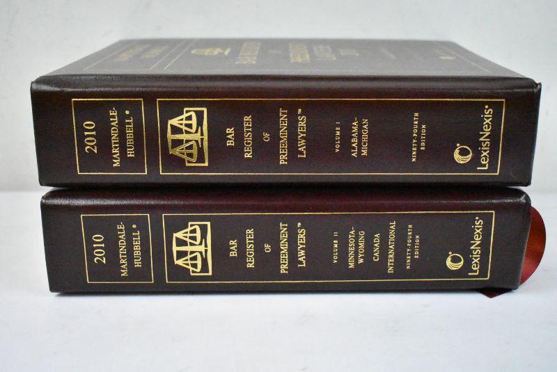 Bar Register of Preeminent Lawyers 2010 Volumes 1 & 2 High Quality Hardcover Books