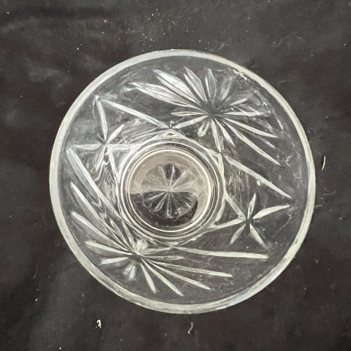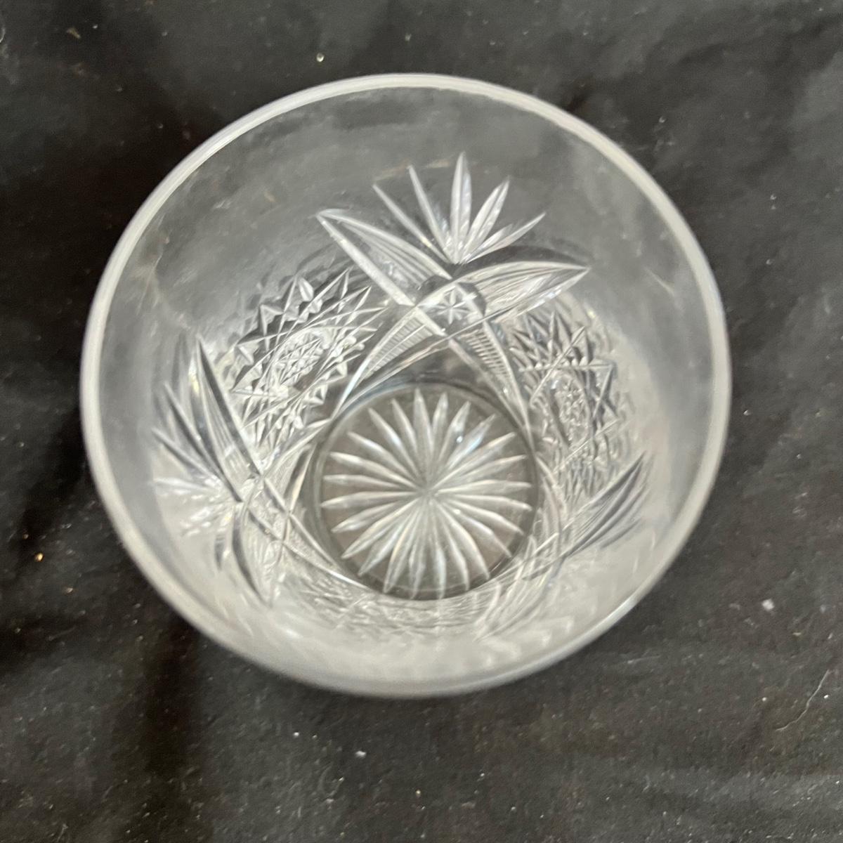 Six drinking/bar glasses, a medium size picture that measures approximately 3”D x 4.5”H, and a smaller one that measures approximately 2”D x 2.5”H. Also a small glass dish (olives anyone?) that measures 3.5”D x 2.5”H.