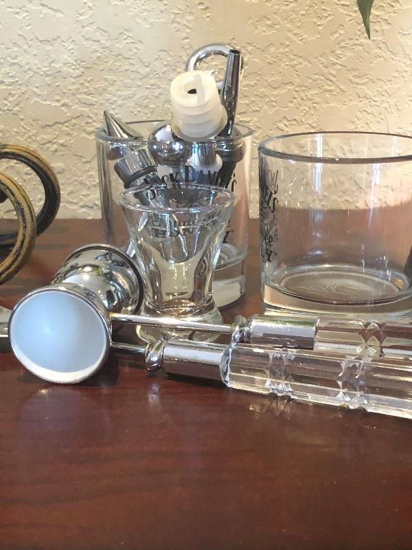 Stoppers, two Jack Daniels glasses wine bottle opener
