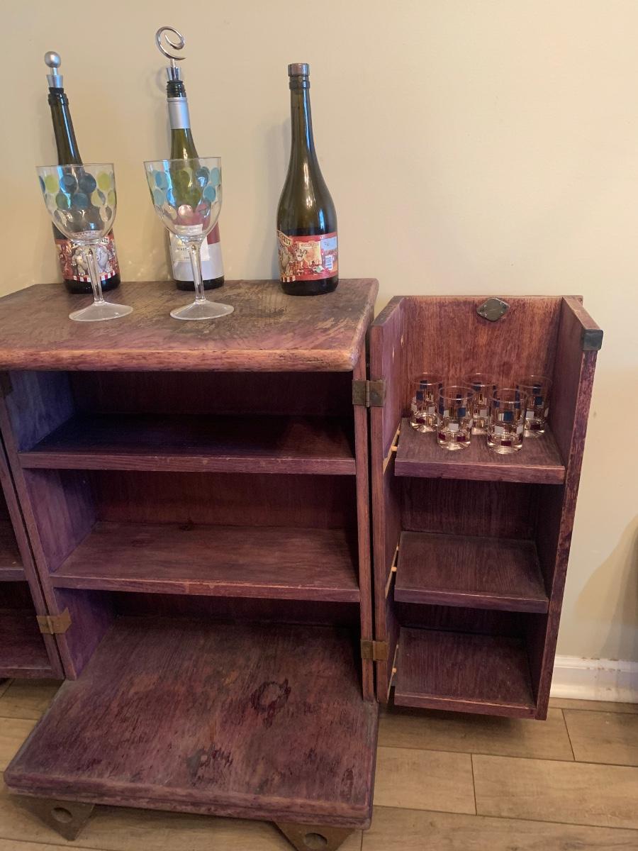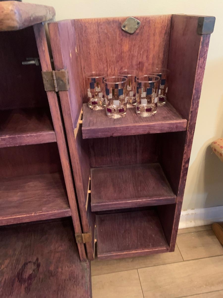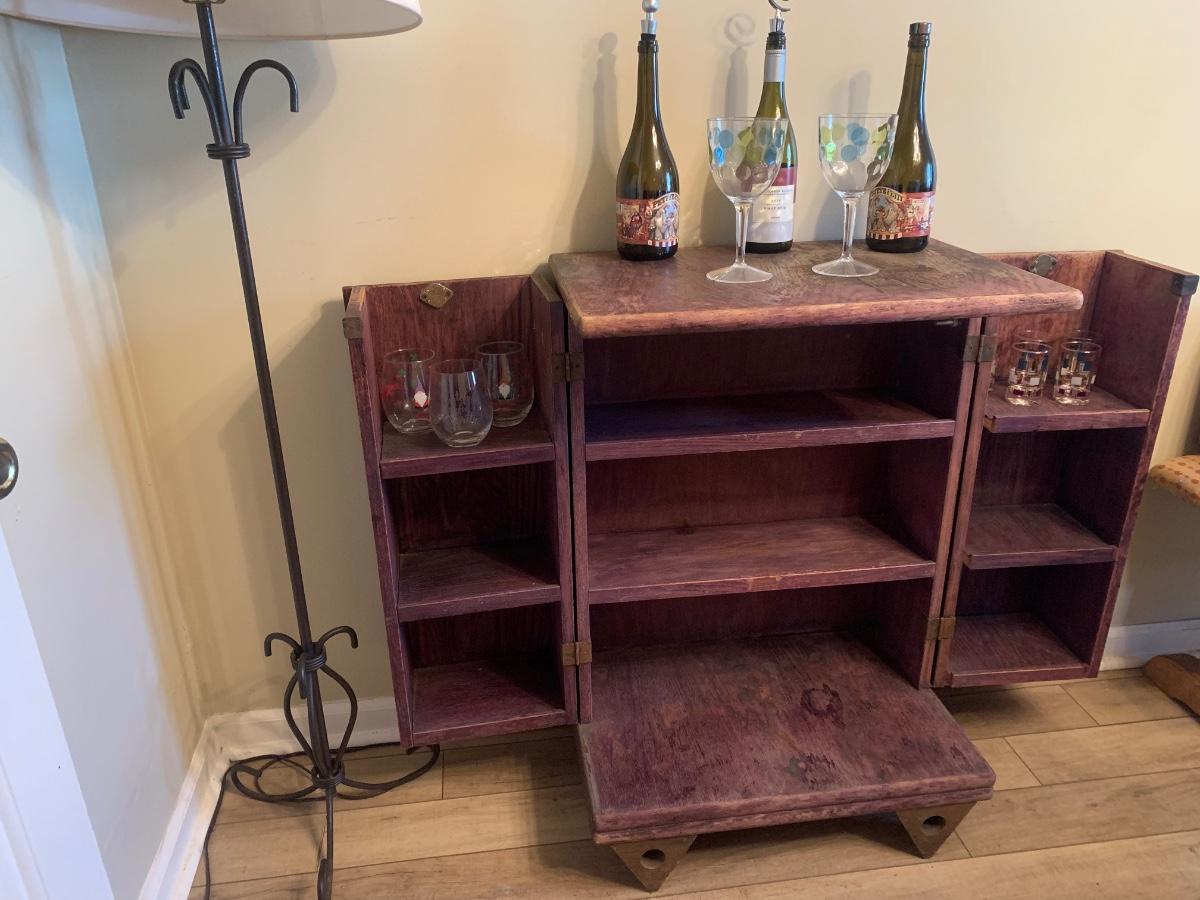 Bar with hinged magnetic closure doors with shelves -wooden 36"H  24"W  16"depth