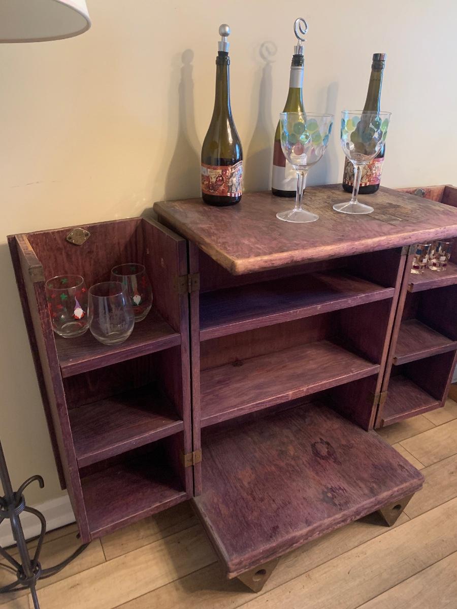 Bar with hinged magnetic closure doors with shelves -wooden 36"H 24"W 16"depth