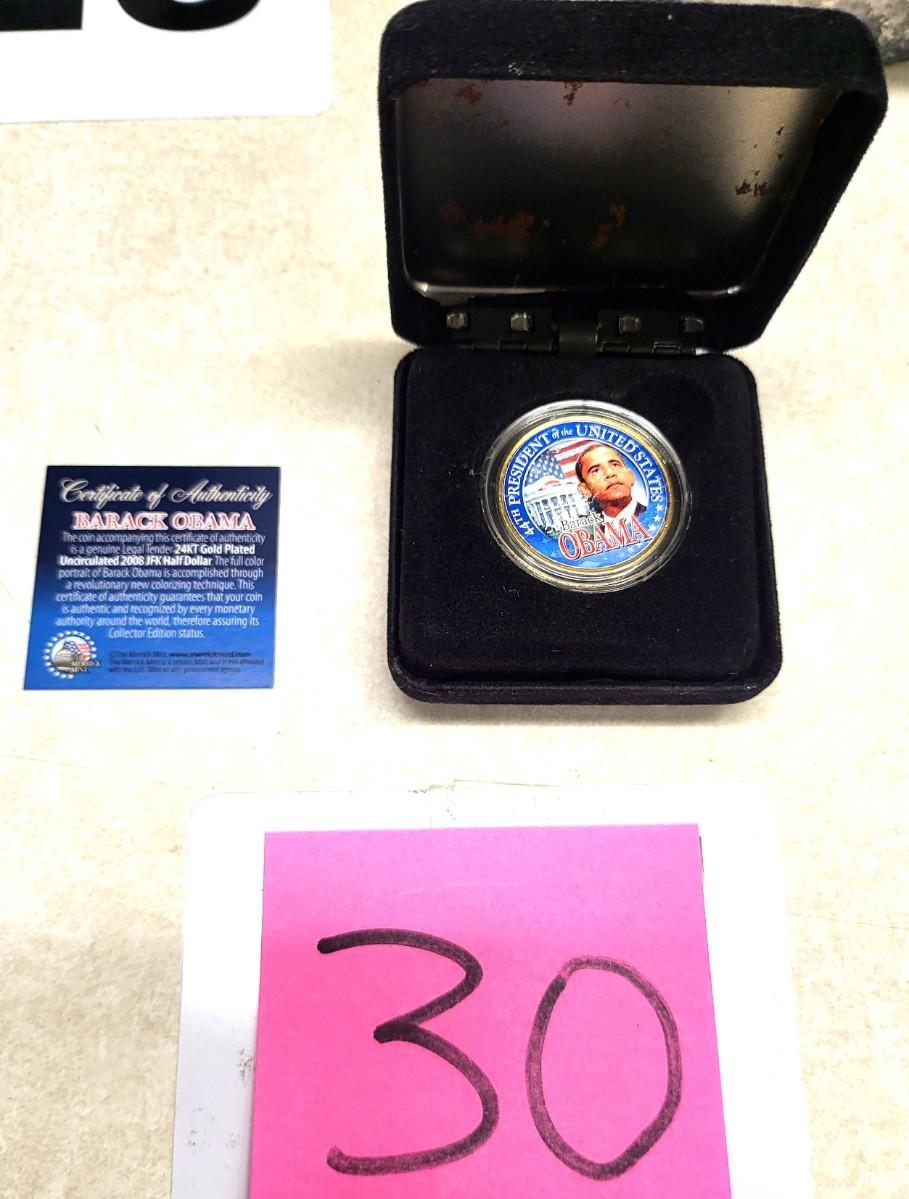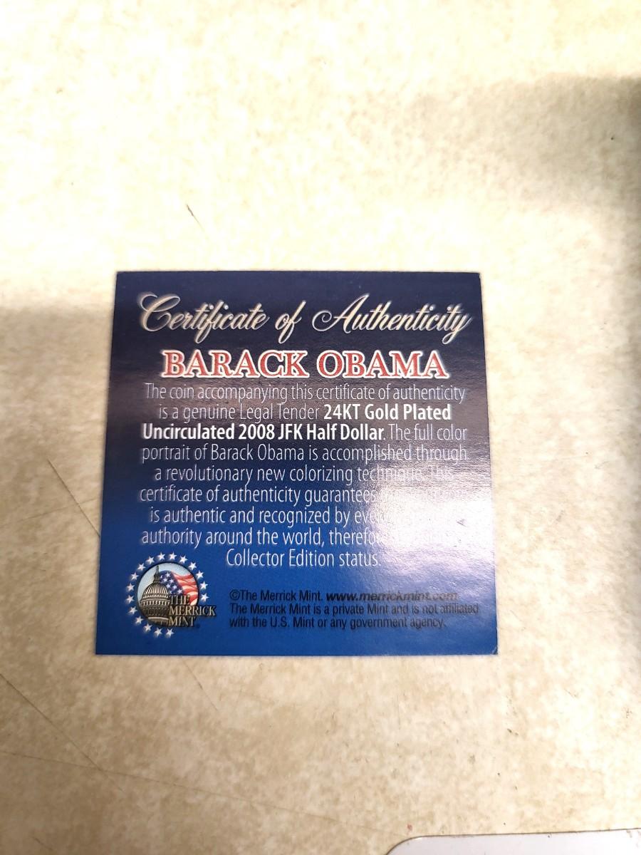 1 Limited Edition Barack Obama 24KT Gold Plated Uncirculated 2008 Commemorative JFK Half Dollar