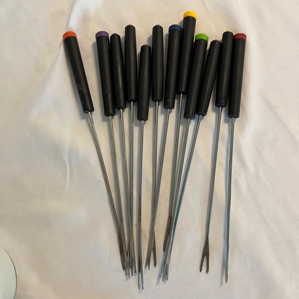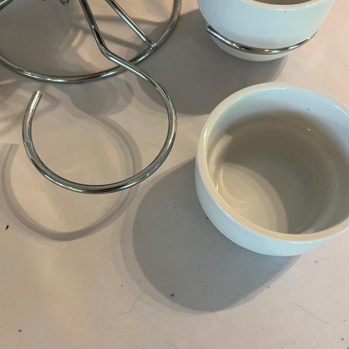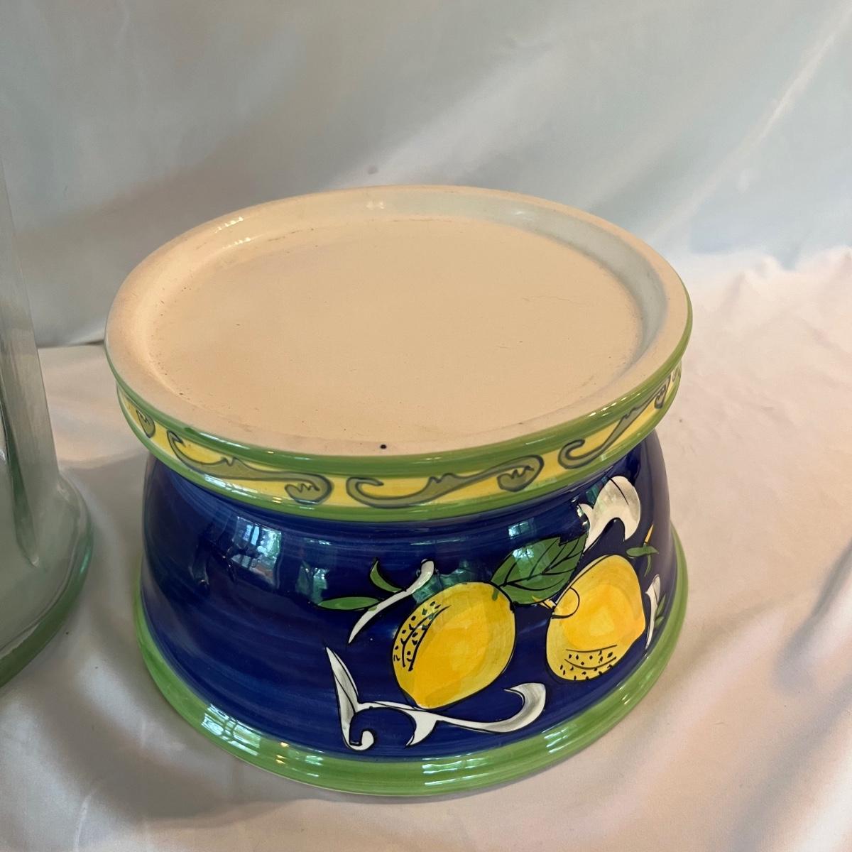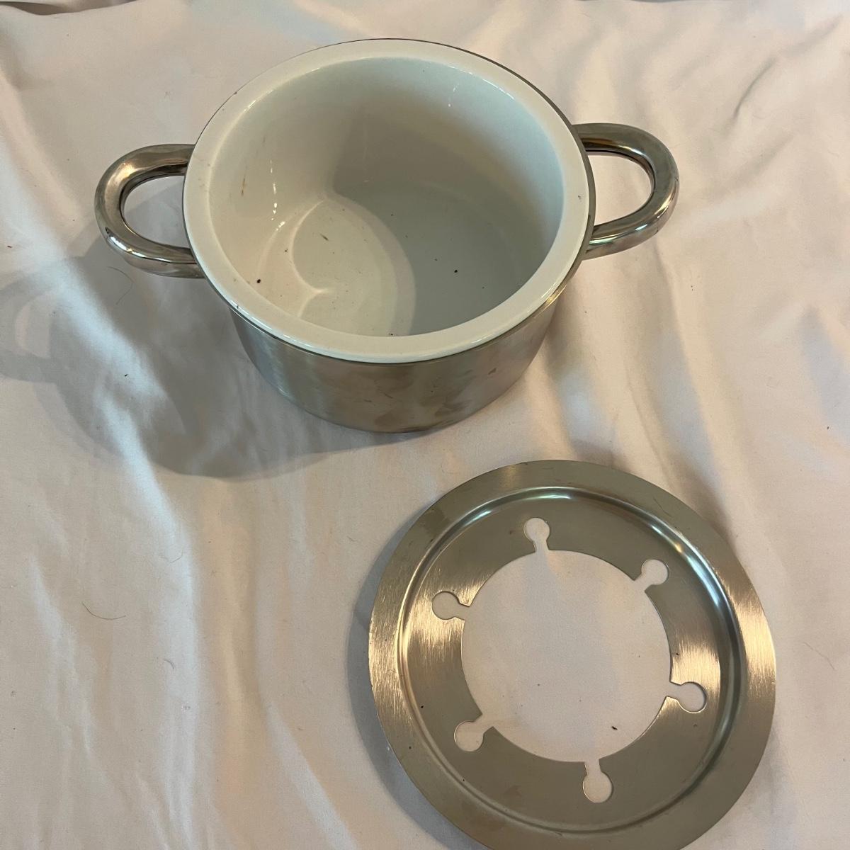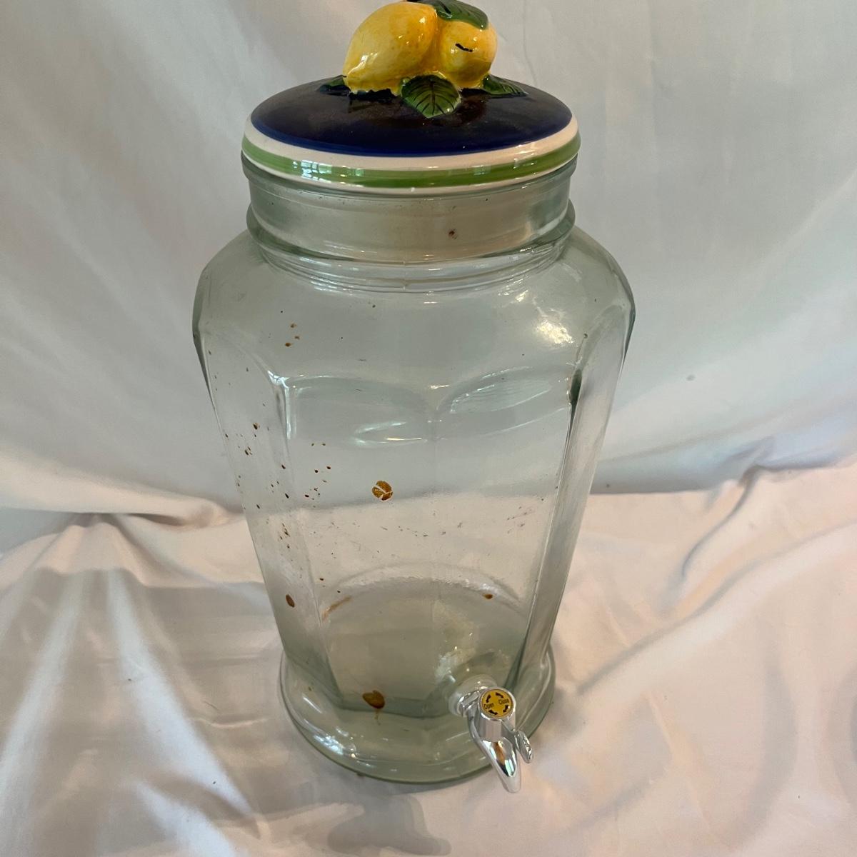 This lot includes one ceramic and glass lemonade jug, one fondue set with fondue forks, and one large serving rack with ceramic dishes. The lemonade jug has some stains on the glass (see photos). The serving rack has removable ceramic dishes and removable racks. The serving rack measures about 24” x 10” x 23”H. Local pickup only.