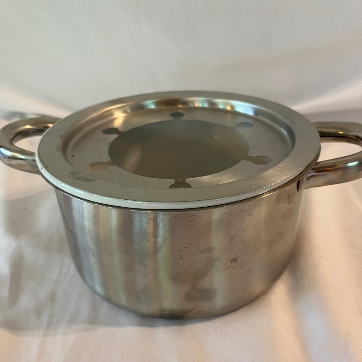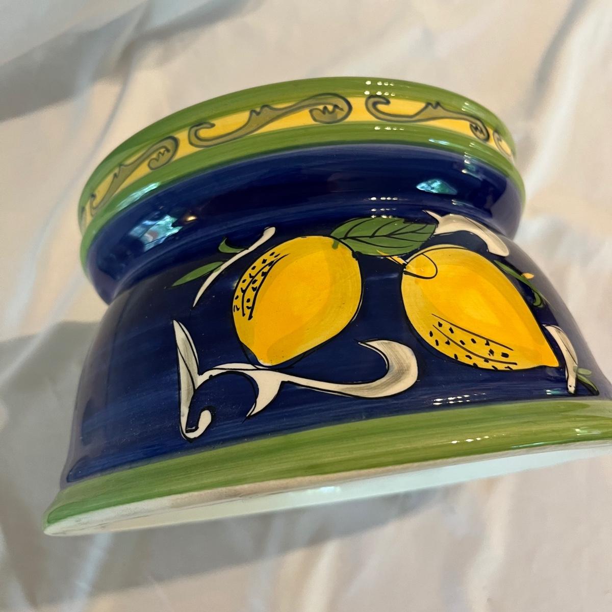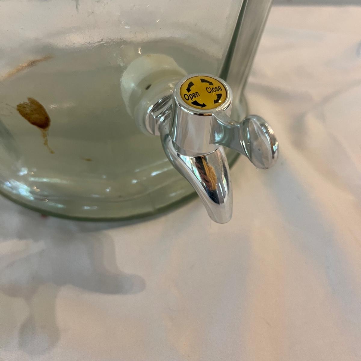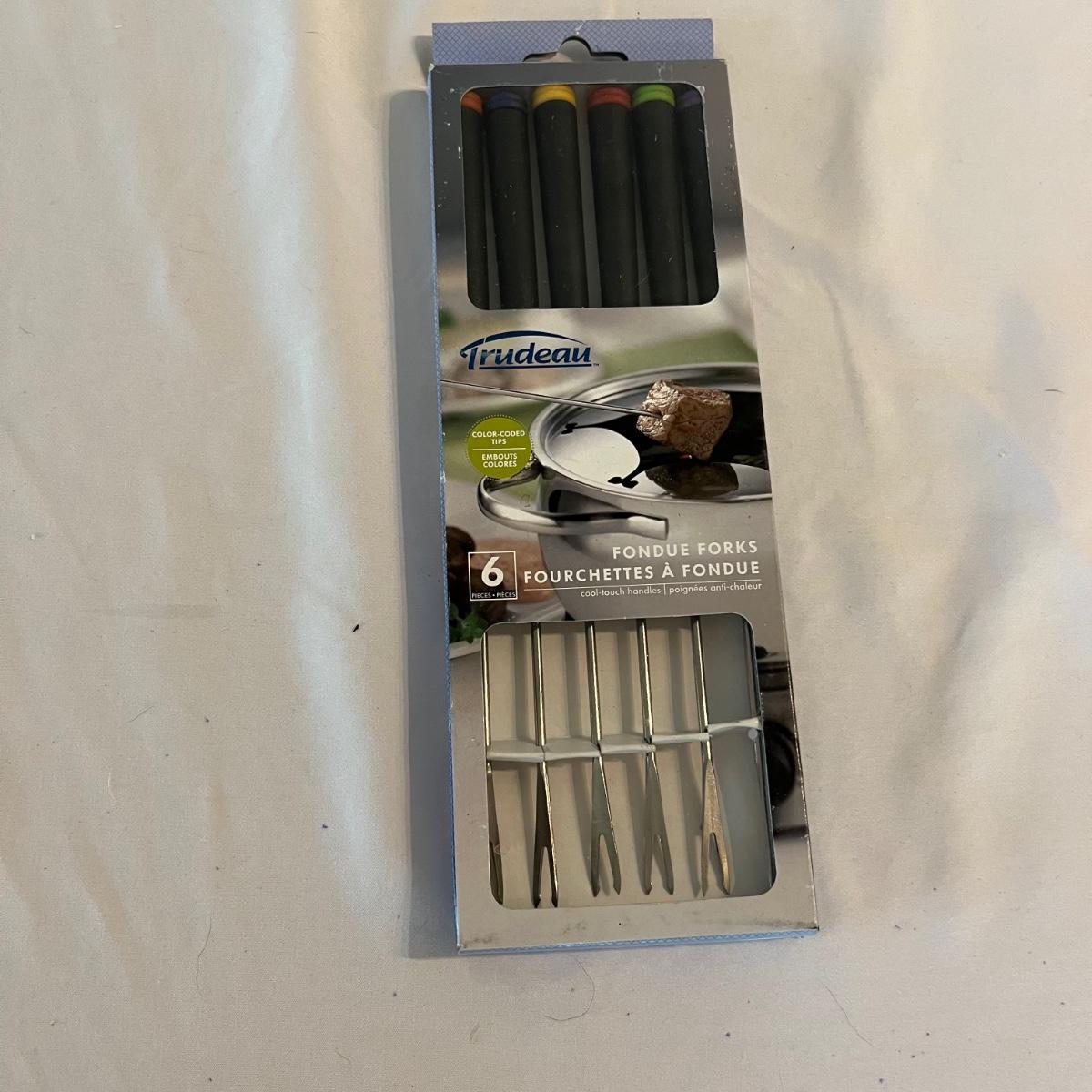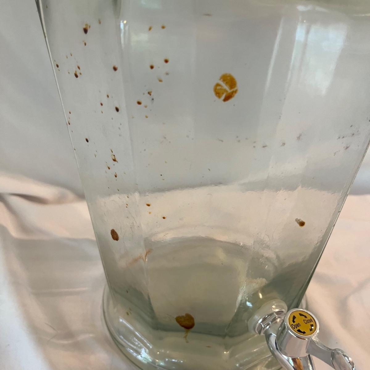 This lot includes one ceramic and glass lemonade jug, one fondue set with fondue forks, and one large serving rack with ceramic dishes. The lemonade jug has some stains on the glass (see photos). The serving rack has removable ceramic dishes and removable racks. The serving rack measures about 24” x 10” x 23”H. Local pickup only.