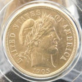 Barber Silver Dime 1905-S Circulated XF+/AU (R3)