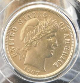 Barber Silver Dime 1907-D Circulated XF+/AU