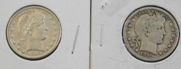 Barber Silver Quarter 1916 and 1916-D Circulated
