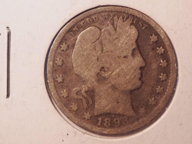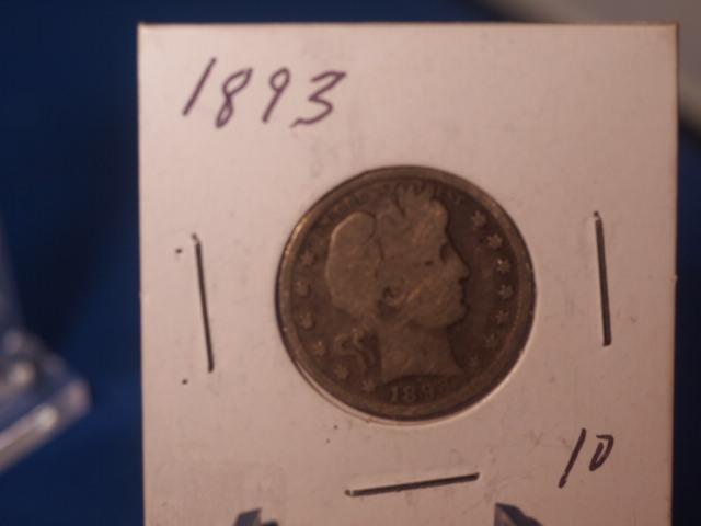 1893 P Barber Silver Quarter in VG Condition Value 143 to 260
