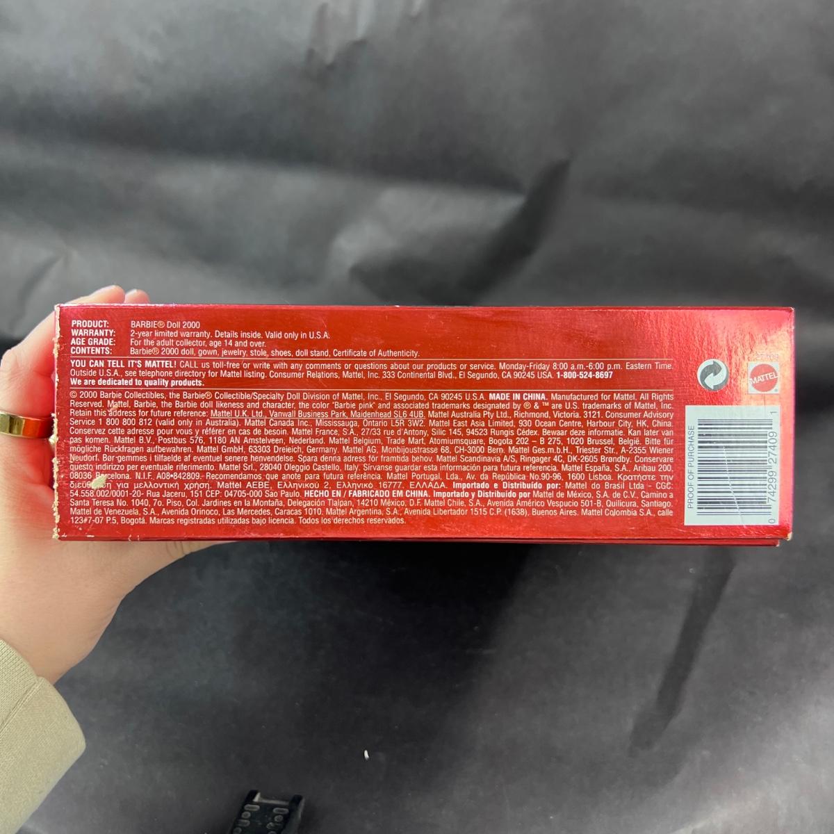 Barbie Doll 2000 invites you to celebrate an extraordinary era of new beginnings and endless possibilities for this century and all time to come. And she's wearing red, so you know she means it. This doll was produced by Mattel in 2000. This doll has not been out of the box. **|** Please see photos for details and condition. ::: Shipping is available on this lot. If you require shipping you must let us know at the close of the auction. We will coordinate with you after the item has been won. Shipping fees will include insurance up to or exceeding the value of all items being mailed. If you have any questions regarding this lot please contact the auctioneer either via this website, by direct email or by phone. PICK UP TIMES and other important information can be found in the TERMS and DESCRIPTION of the auction. Please take a look for pertinent information. Thanks!