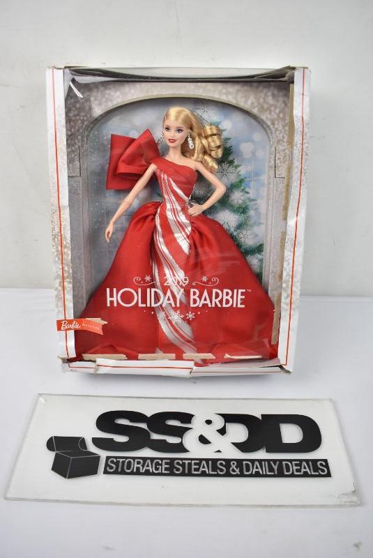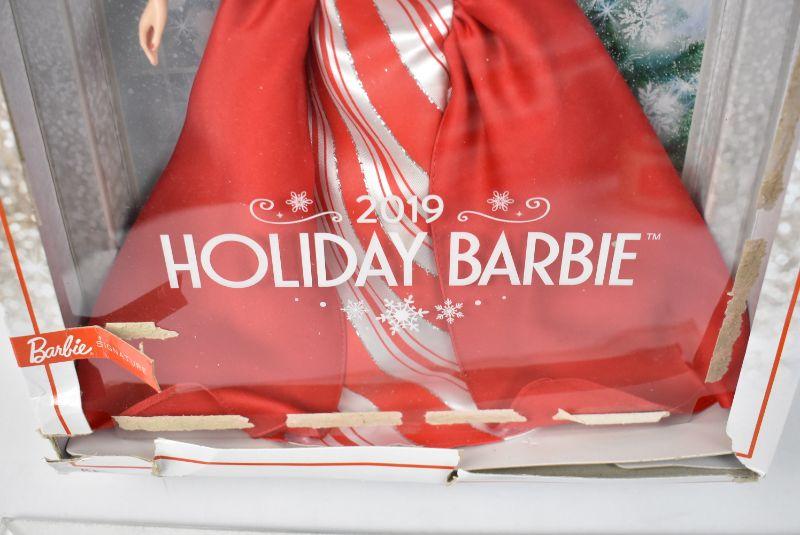 Barbie 2019 Holiday Doll, Blonde Curls with Red & White Gown. Box Damage