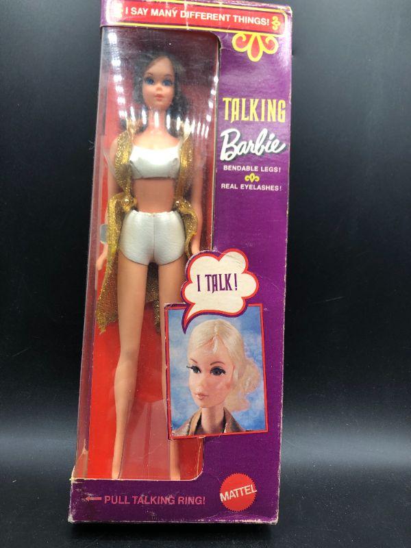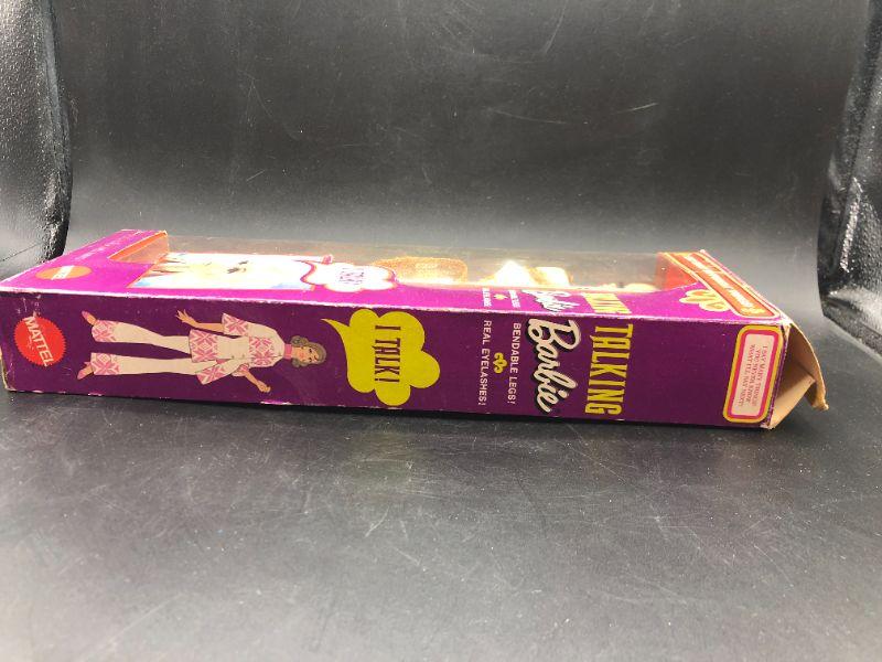 Vintage 1969 Talking Barbie. Brunette doll. Does not talk, string does not pull out. Still in Box, and box has some wear.