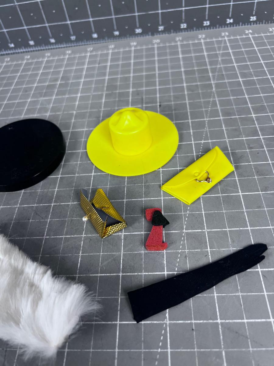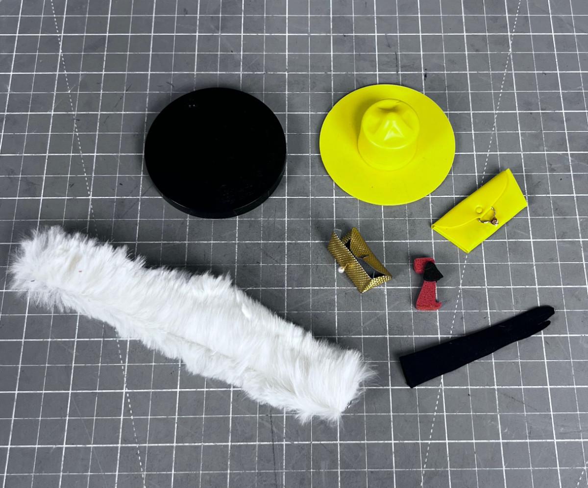BARBIE Accessories: Stand, Muff, Clutch, Hat, Fur Muff Etc.
