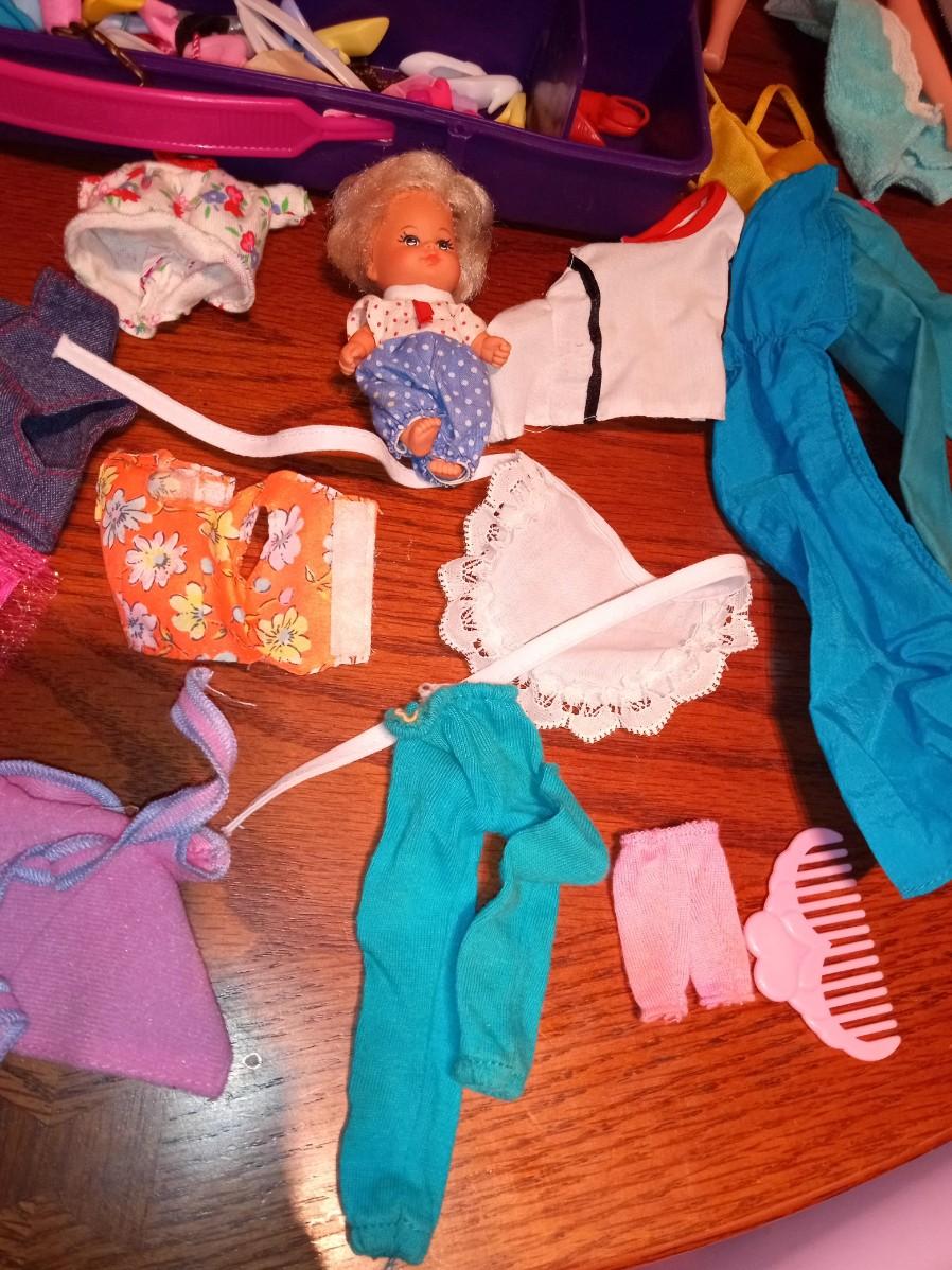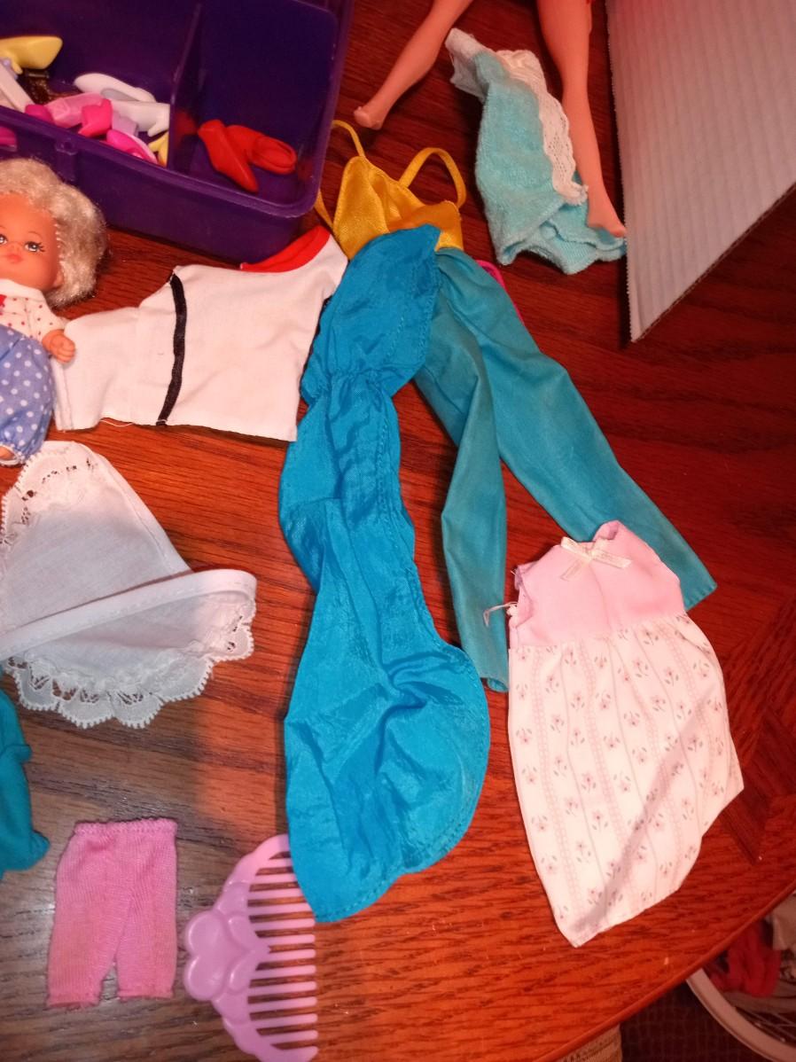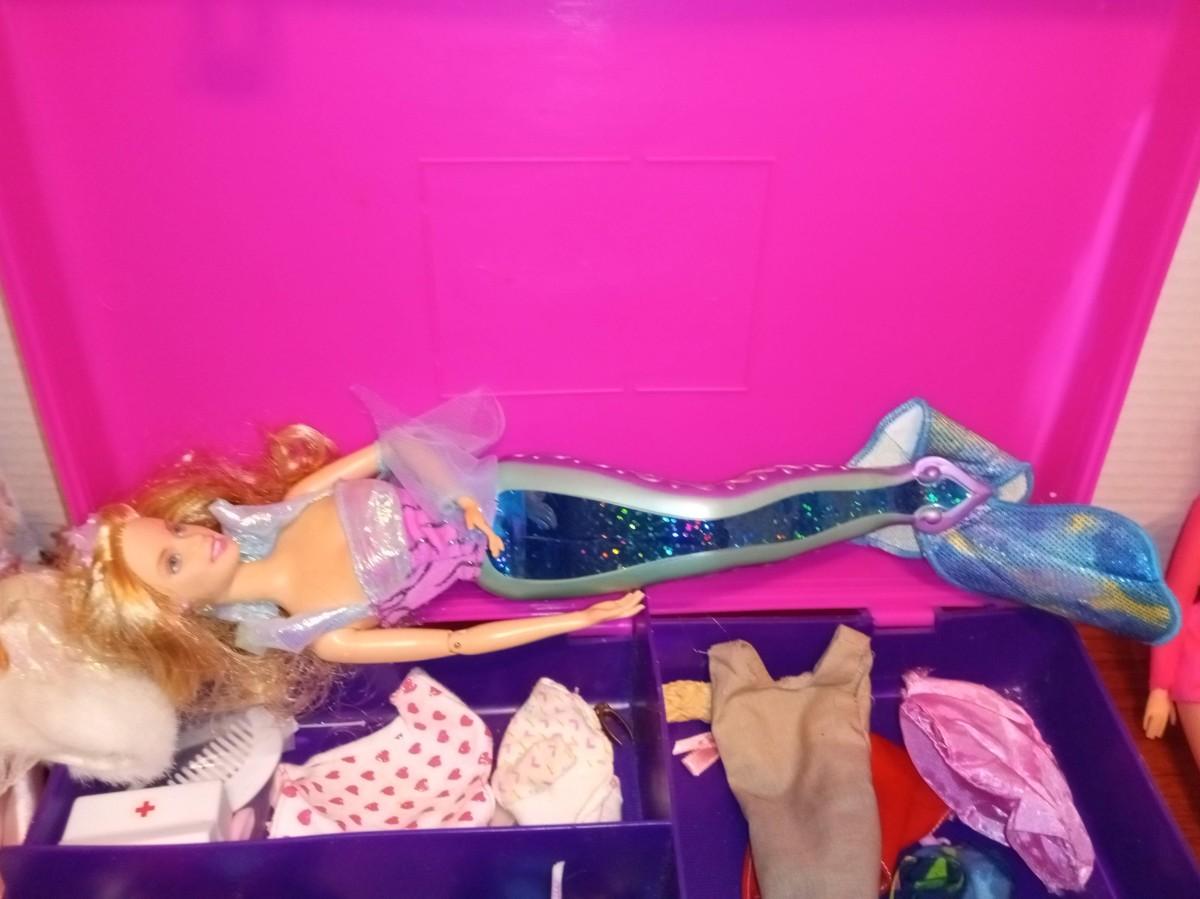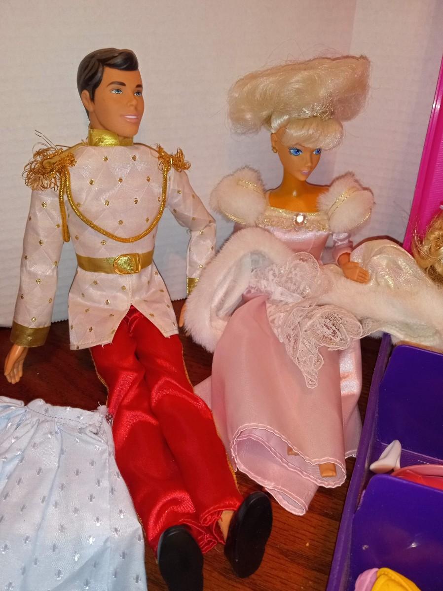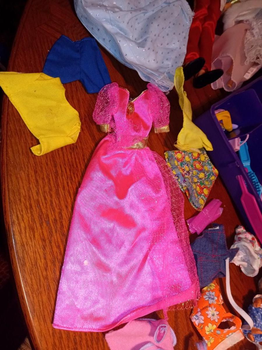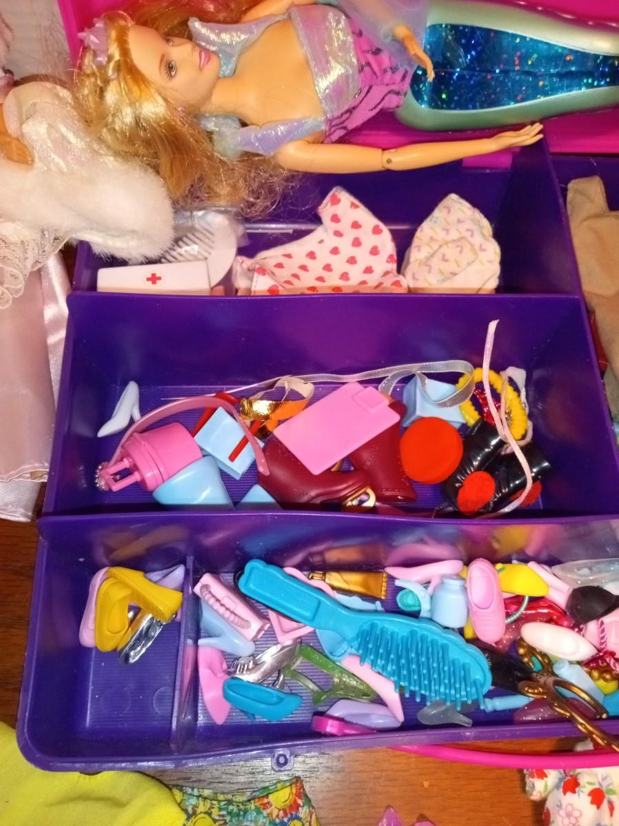 BARBIE AND KEN DOLLS, CLOTHES, MANY ACCESSORIES AND A CASE