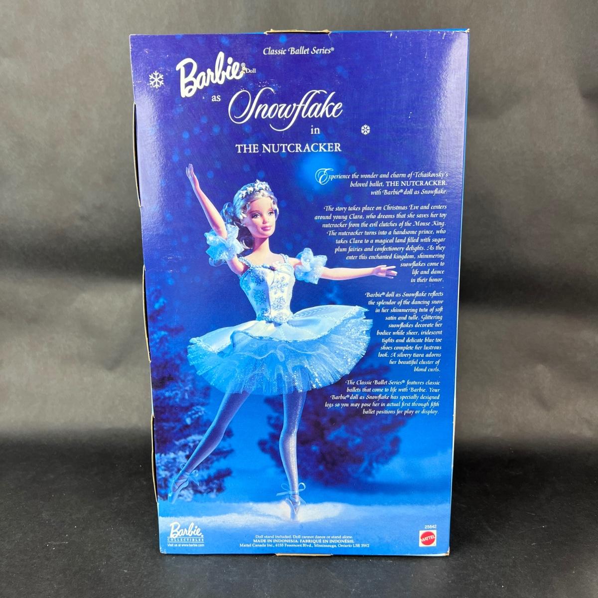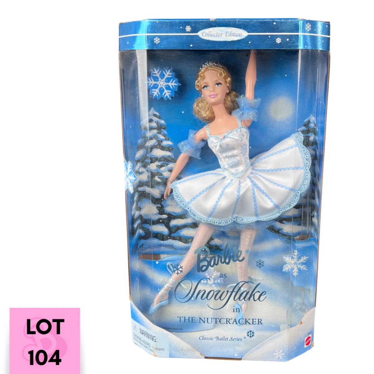 Here she is! The Collector Edition of Barbie as Snowflake in The Nutcracker. Produced by Mattel in 1999 this doll has a great deal of whimsy about it, as was the trend at the time. This doll was part of the Ballet Series - Meaning the dolls have special legs allowing you to pose them differently - but only if you take her out of the box. This doll hasn't been out of its box. **|** Please see photos for details and condition. ::: Shipping is available on this lot. If you require shipping you must let us know at the close of the auction. We will coordinate with you after the item has been won. Shipping fees will include insurance up to or exceeding the value of all items being mailed. If you have any questions regarding this lot please contact the auctioneer either via this website, by direct email or by phone. PICK UP TIMES and other important information can be found in the TERMS and DESCRIPTION of the auction. Please take a look for pertinent information. Thanks!