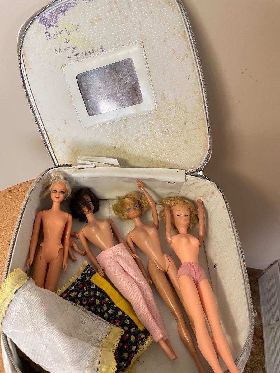 Barbie case and vintage barbies
