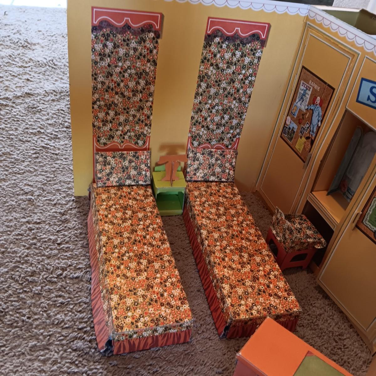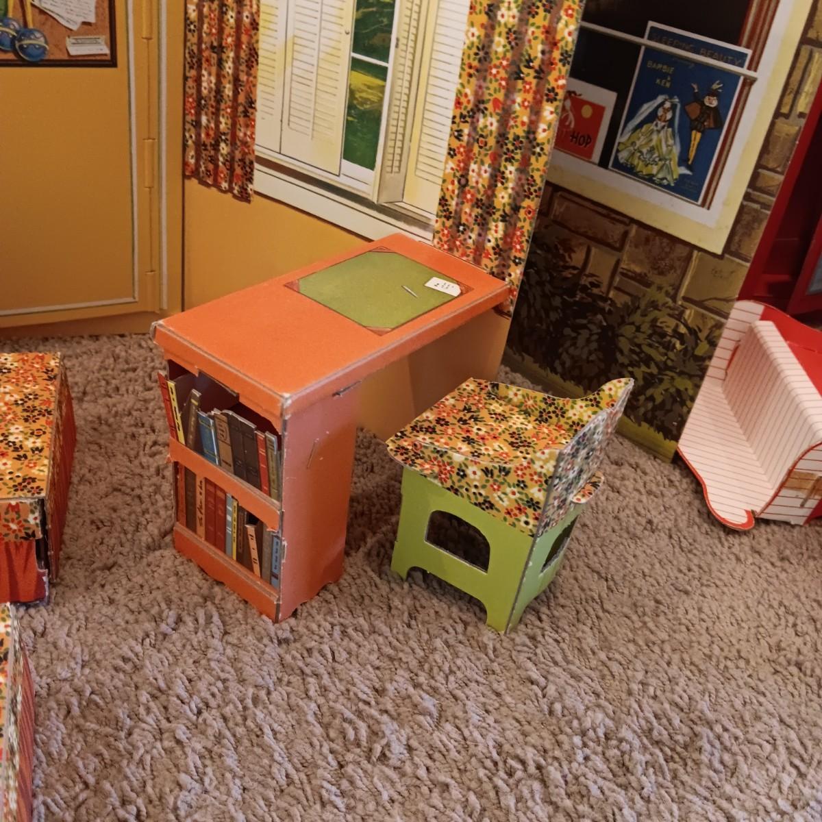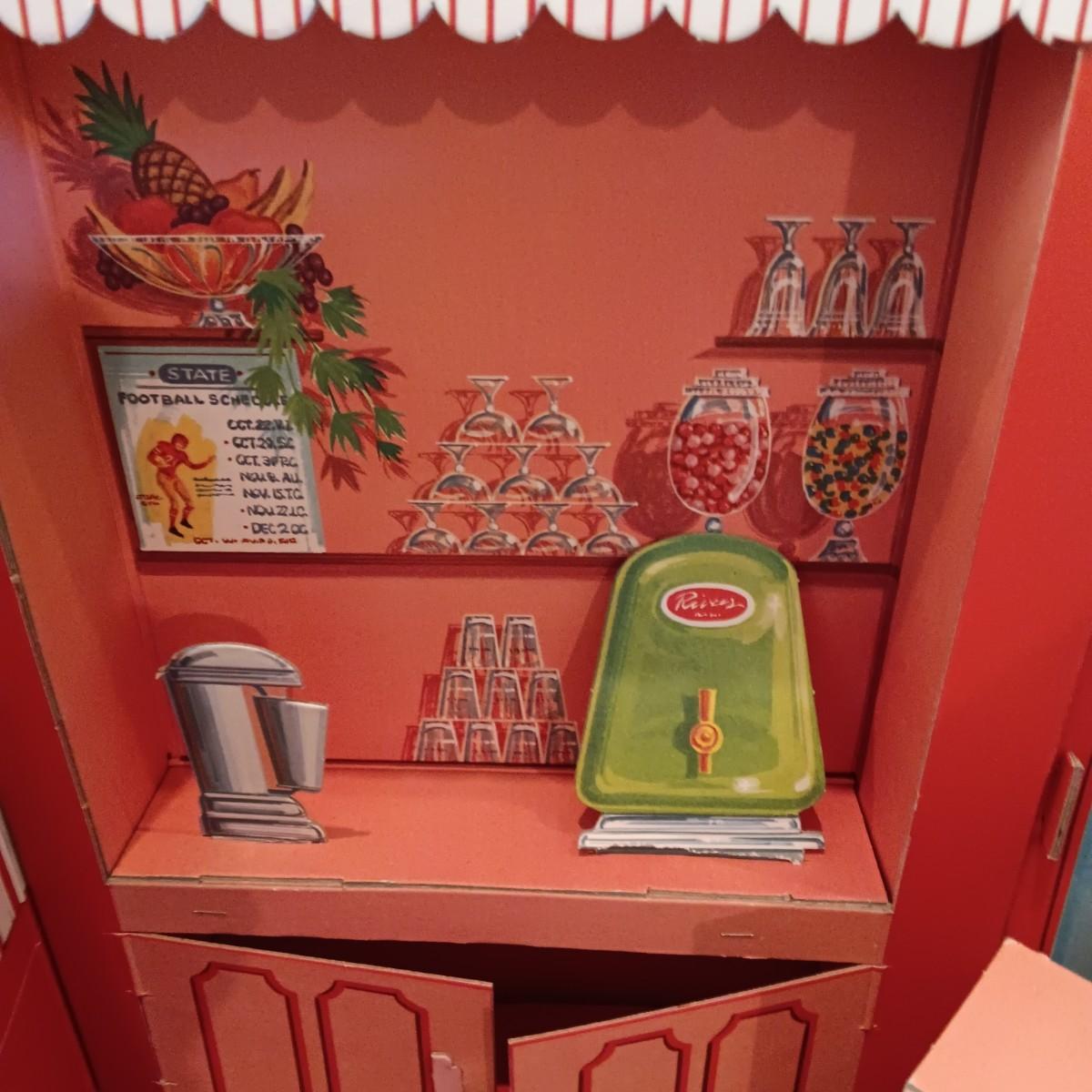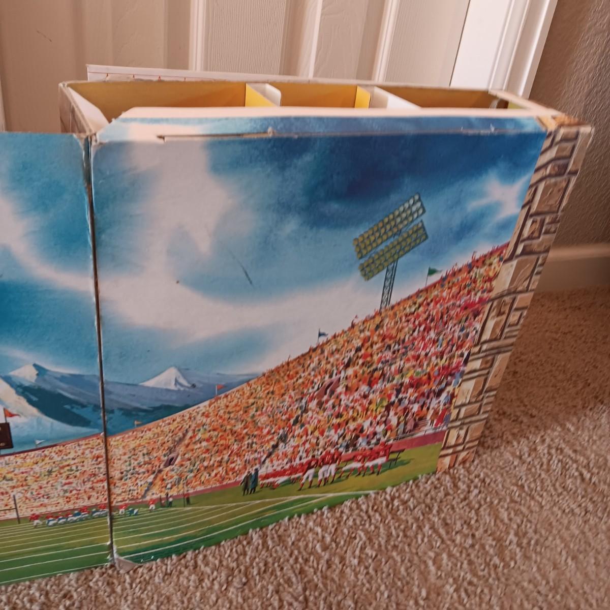 CARDBOARD THAT FOLDS OUT TO A WHOLE LOT OF FUN! DORM ROOM, ICE CREAM SHOP, MOVIE THEATRE AND THE GRAND STANDS. IT'S IN VERY GOOD SHAPE CONSIDERING IT IS FROM THE EARLY 60'S