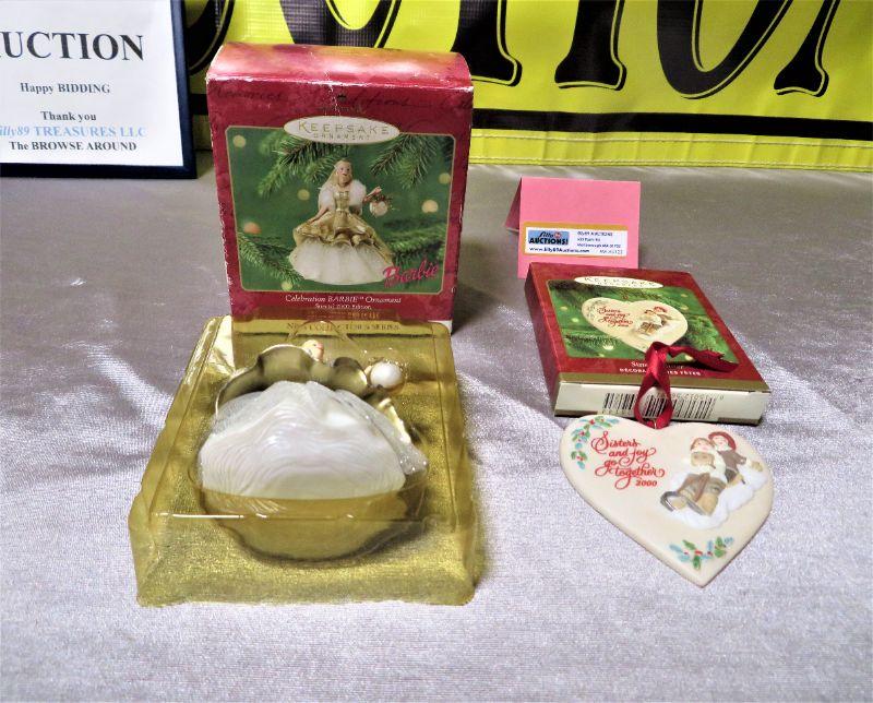 (2) 2000 Vintage Hallmark Keepsake Ornaments - (1) Barbie Limited 2000 Edition in box & Sisters Hanging Ornament. 2# Shipping.