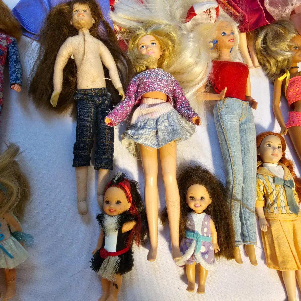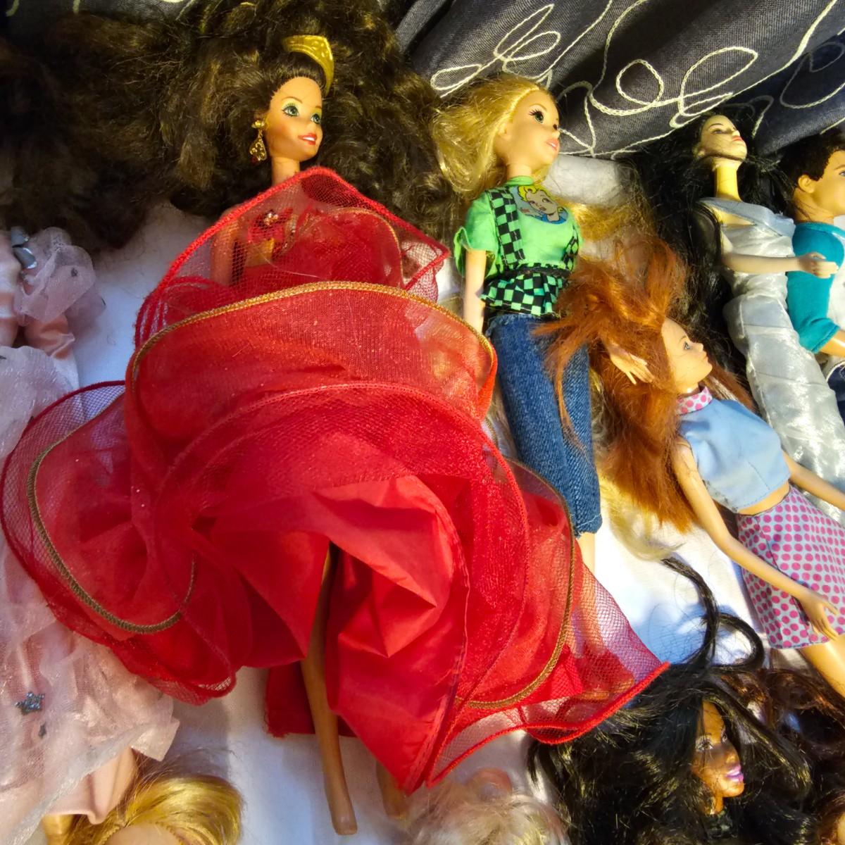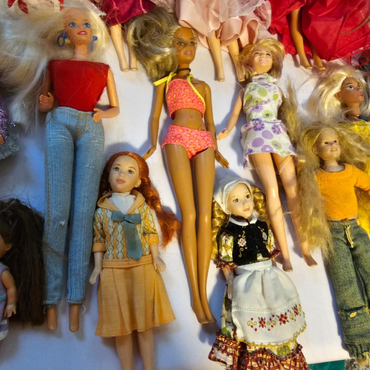 Over 30 dolls in this collection. Barbie and Ken in multiple outfits as well as several other doll styles. Includes extra outfits and accessories. See photos for details. Shipping available.