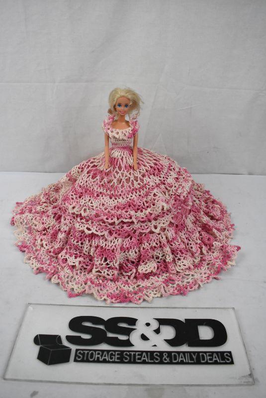 Barbie with Pink Hand Knit Dress and Knit Stand