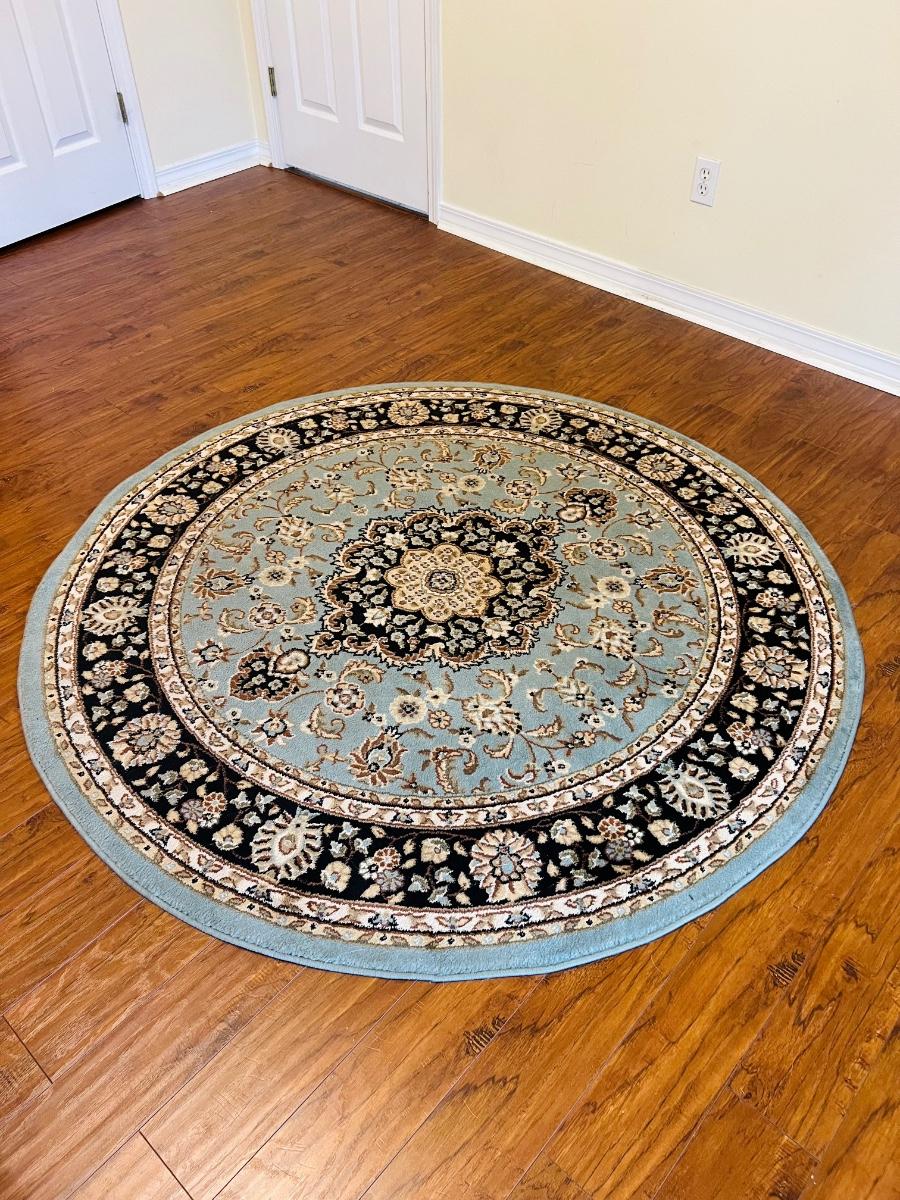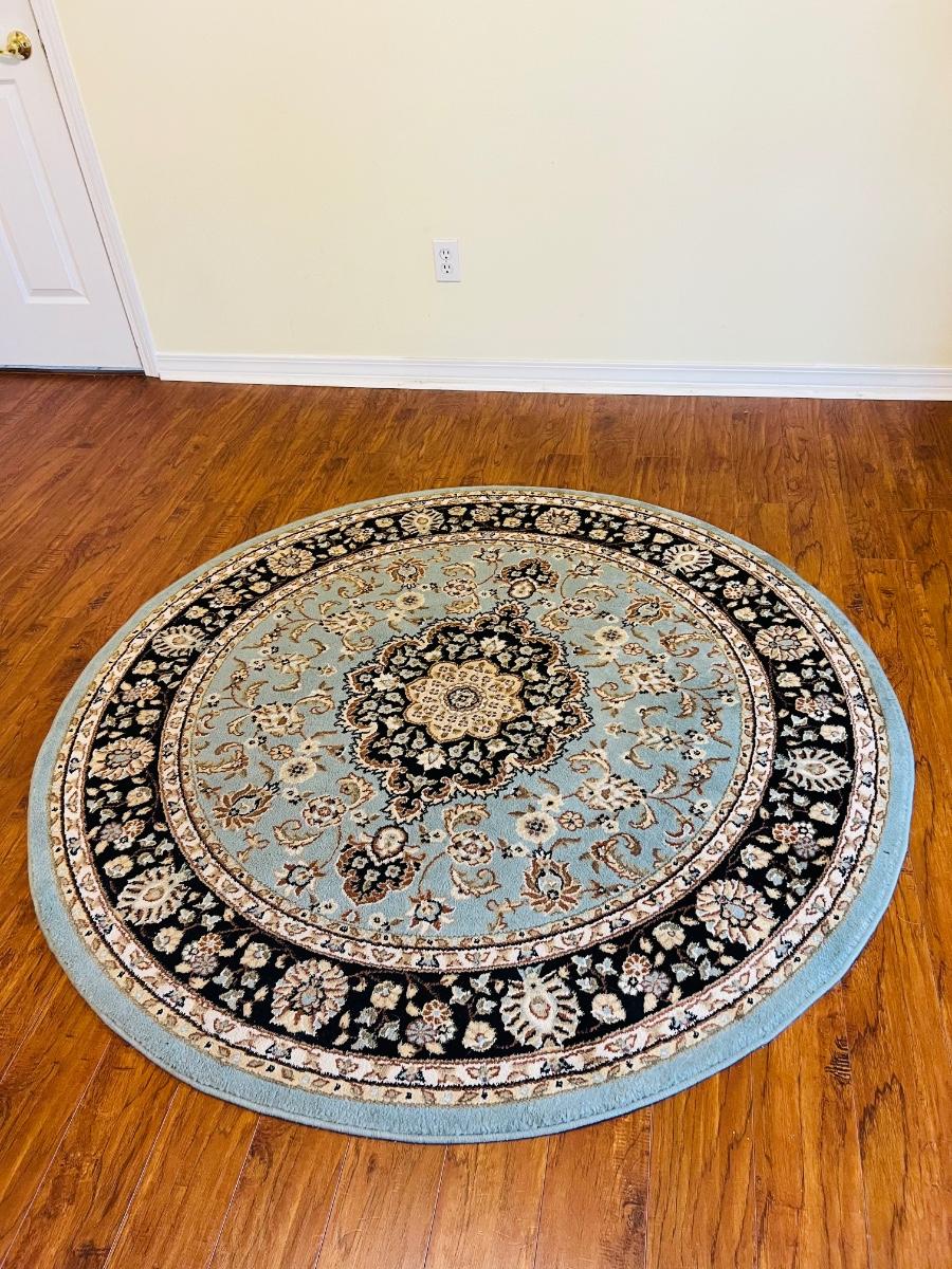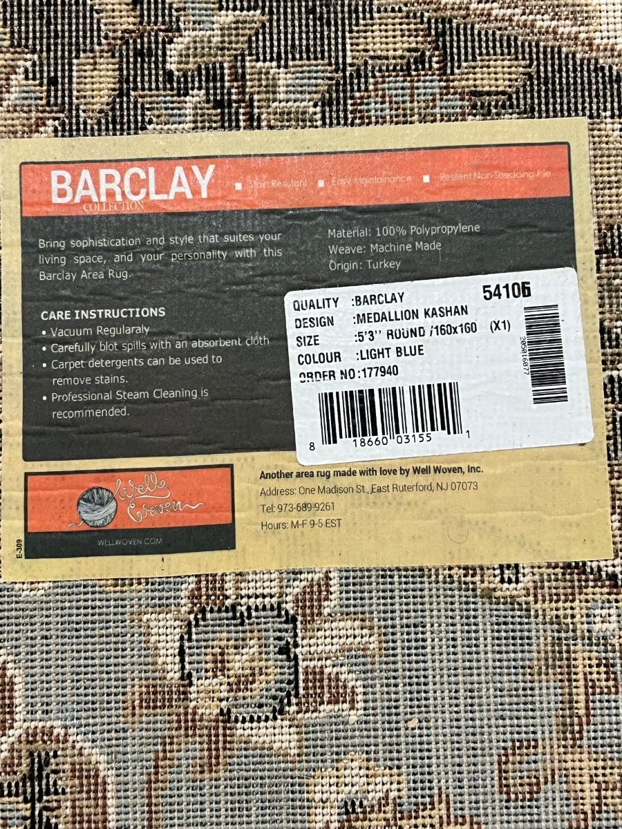 BARCLAY Round Rug. Made of 100% POLYPROPYENE. Measures 63 1/2 inches round.