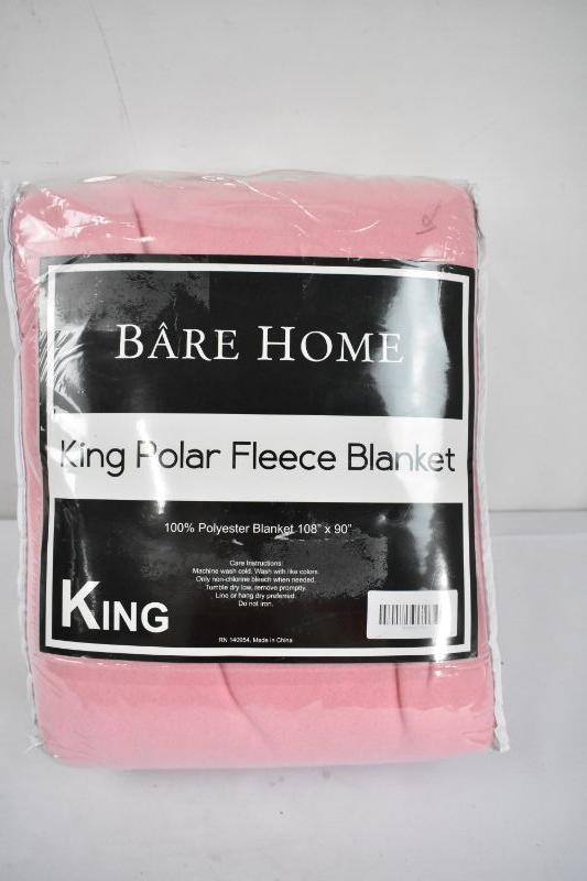 Bare Home King Size Polar Fleece Blanket, Pink 108" x 90" - New