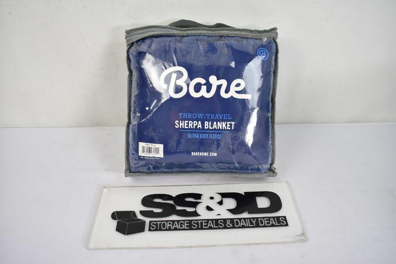 Bare Home Sherpa to Plush Throw Blanket Dark Blue, 50"x60", $22 Retail - New