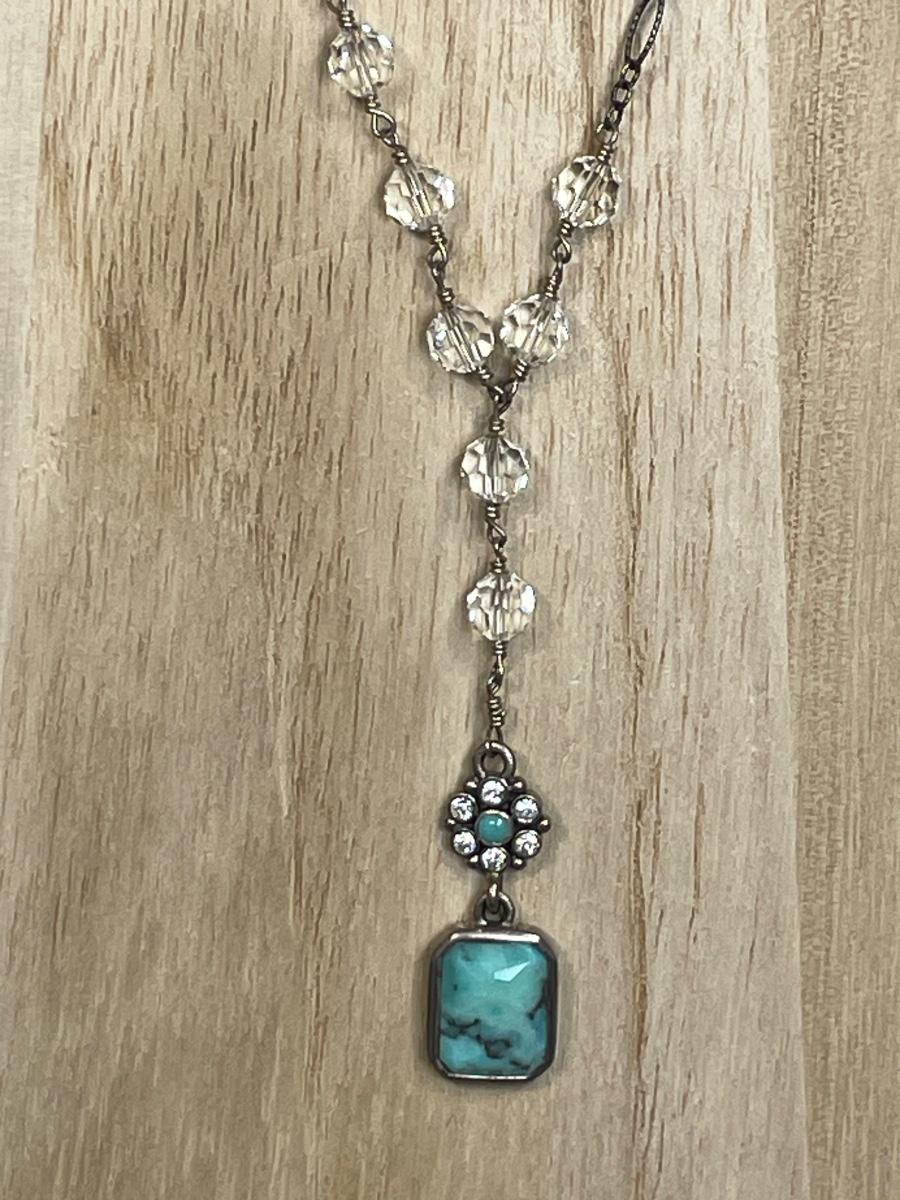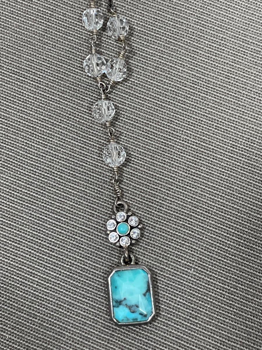 Genuine turquoise and crystal beaded 16-19” necklace. New