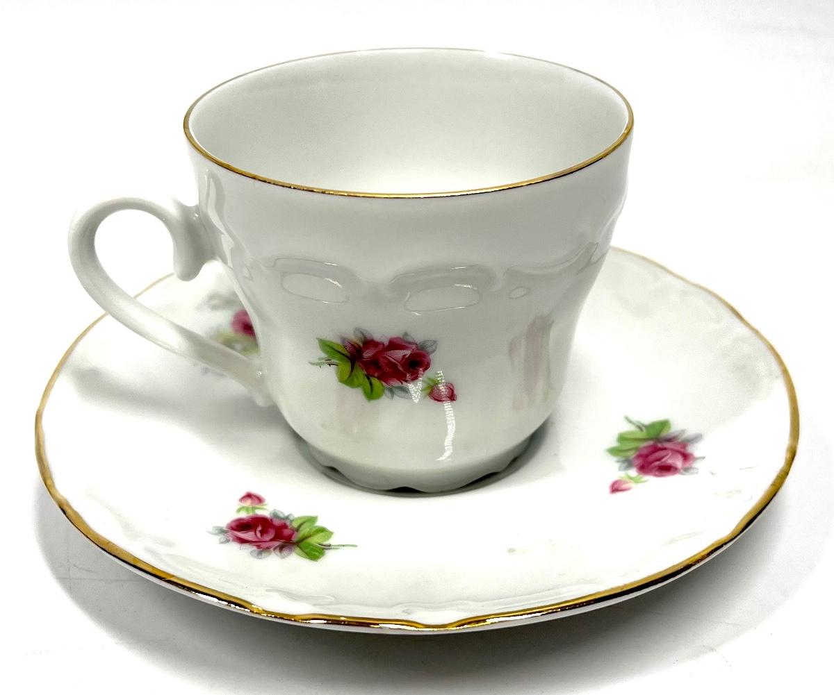 Bareuther Waldsassen Germany rose patterned multicolor tea cup and saucer