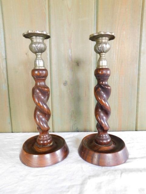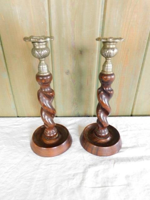 Barley Twist Post with Decorative Metal Candle Cup Candle Holders- 9 3/4 inches high
