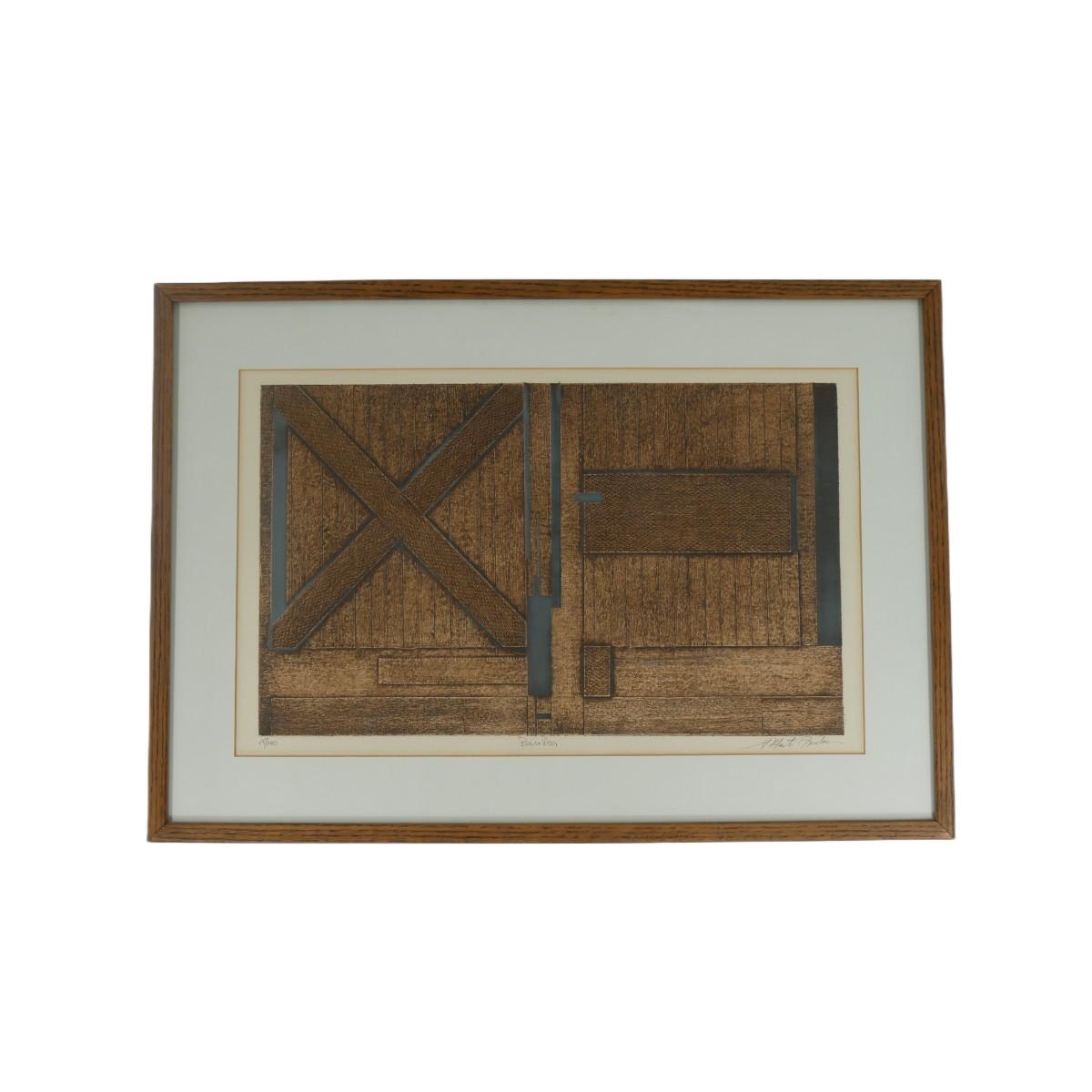 "Barn Door" by S. Martin Friedman limited edition numbered 65/150, pencil signed by artist. Art measures L 19.5" x H 12". Frame measures L 27" x H 19" x D 1.25". Weight is 5 lb 11 oz. (A56)