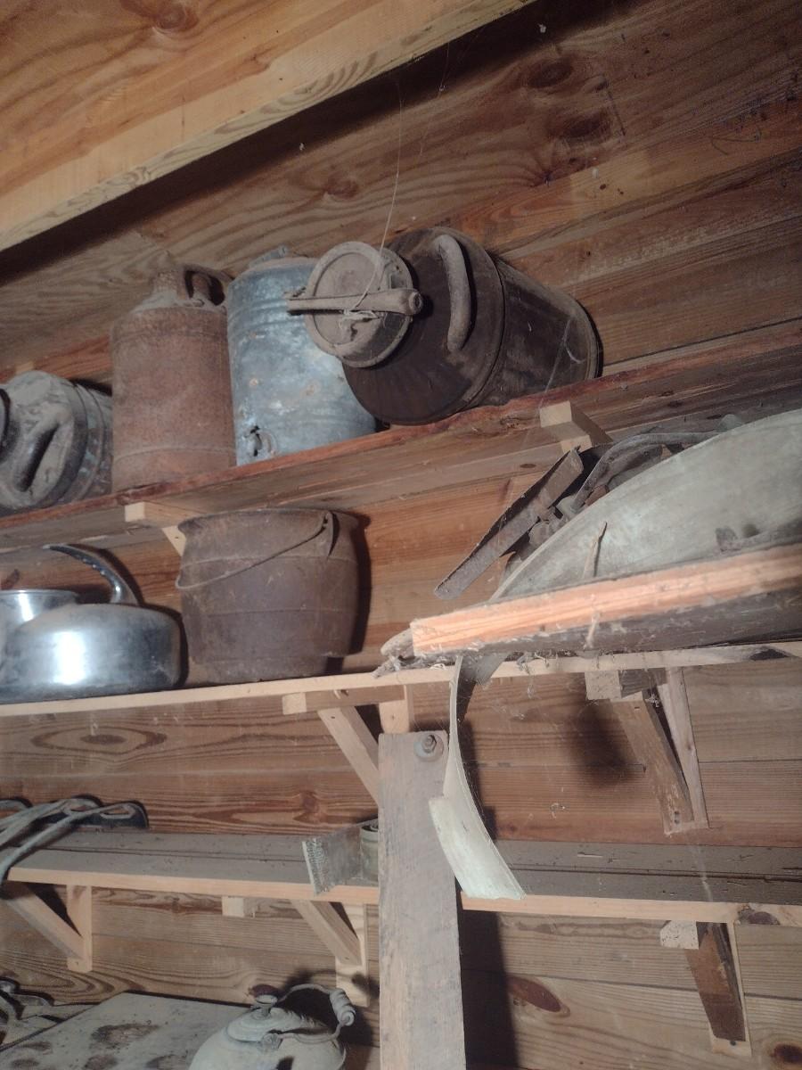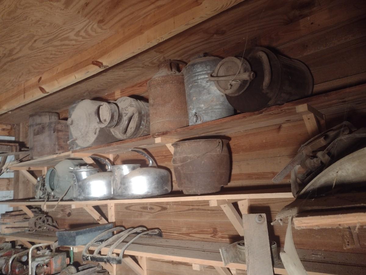 Barn Finds: Assorted Fuel Cans, Dairy Cans and More Various Sizes and Condition. Items as pictured only. Room has other items that are listed separately.