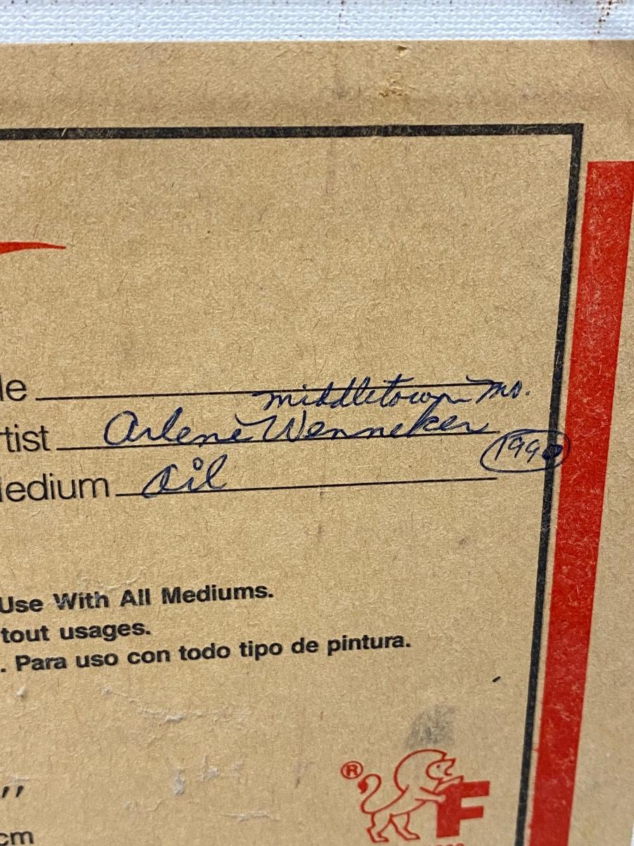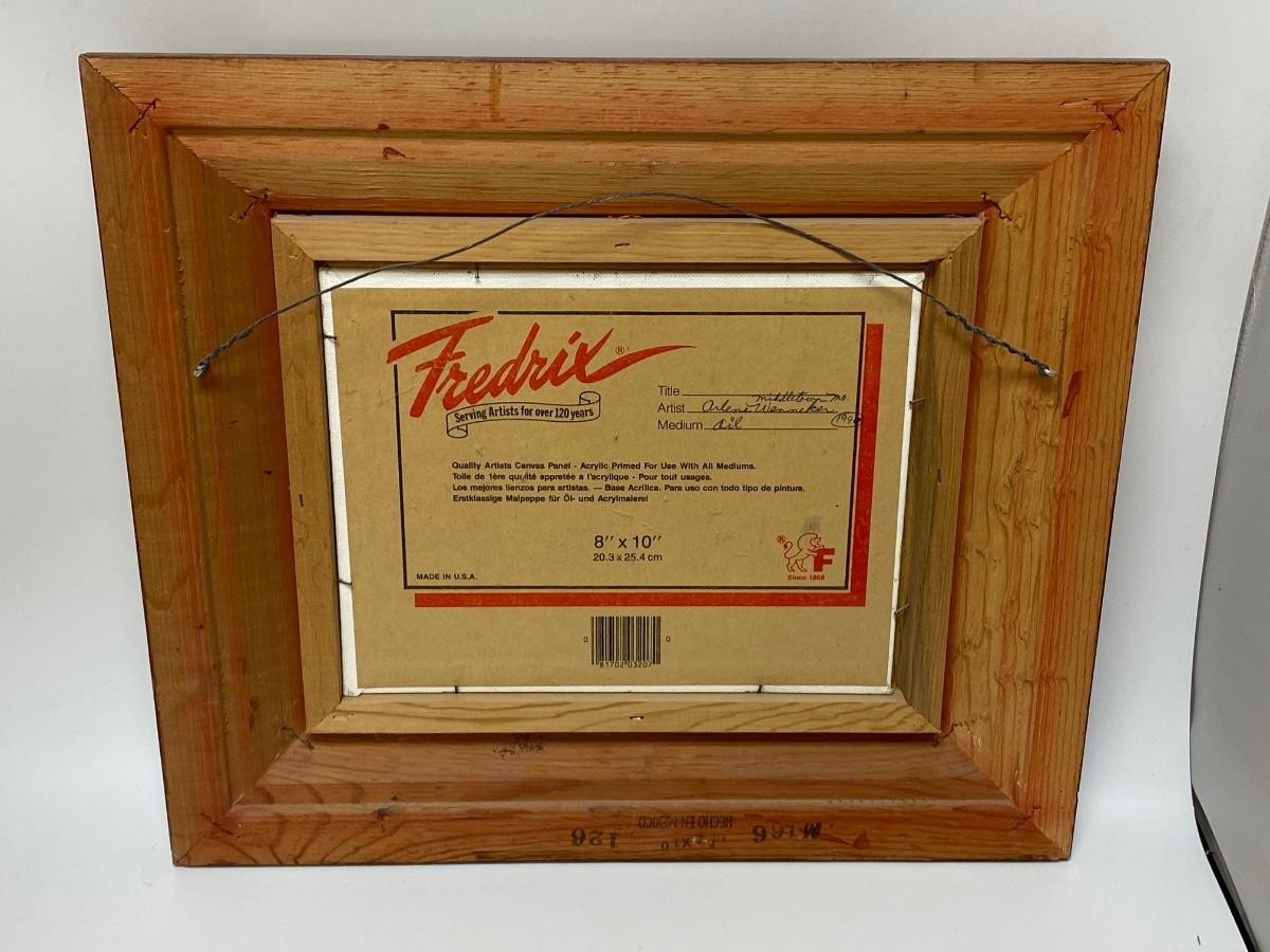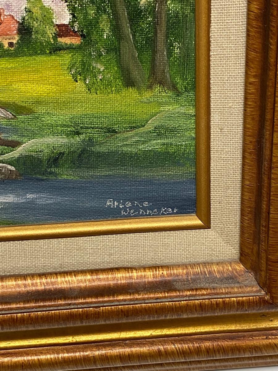 Barn next to the river oil painting. Nicely done. Art is 8x10 in a frame thats about 15x17 size.