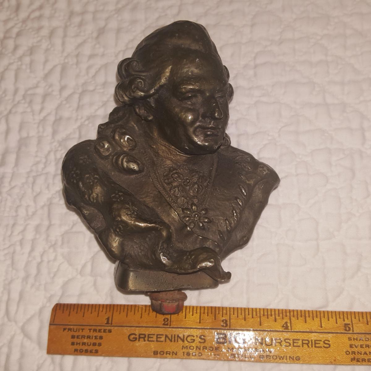 This auction lot is for a Barney Bright Sculpture of King Louis XV. This sculpture is an authentic, signed bronze from the famous Louisville, Kentucky artist. If our memory serves us the King Louis XV statue was designed by Bright for the American Advertising Federation as an association award - much like the "Oscars" - this bust does not sit upon the pedestal or wood stand as others we have seen, nor is it gilded the copper color. Bid now and bid high! Where you gonna get an original Barney Bright at your price.
