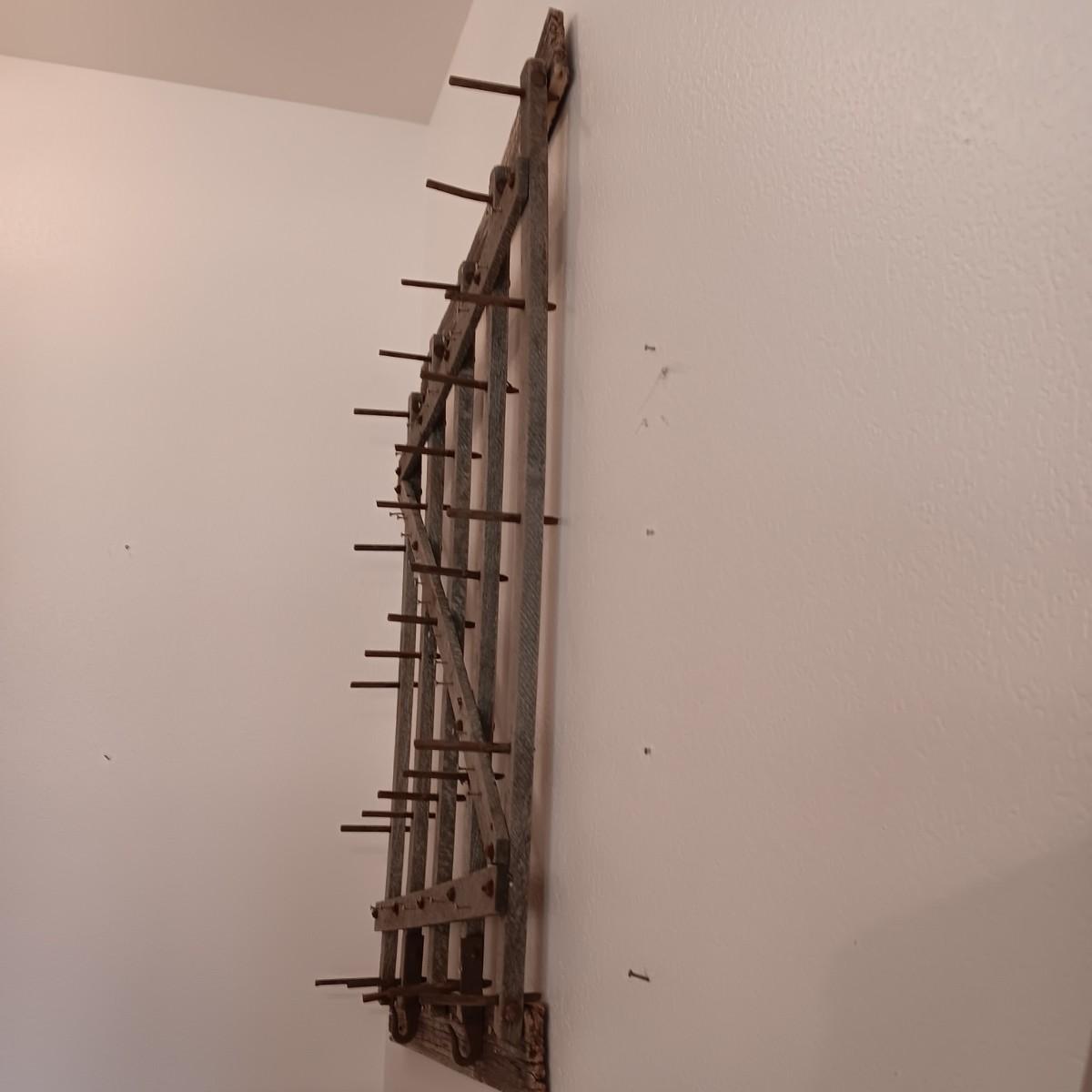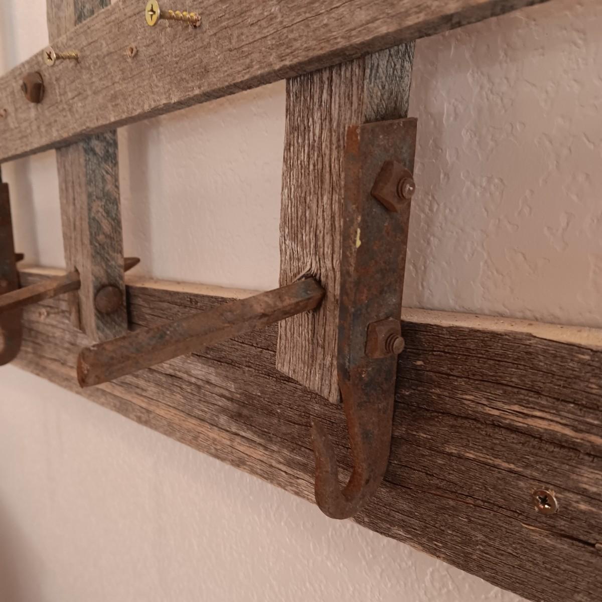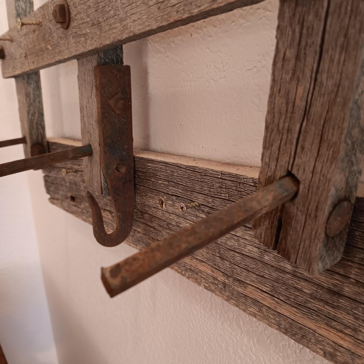 BARNWOOD IRON PEG BOARD WITH ANTIQUE IRON HOOKS