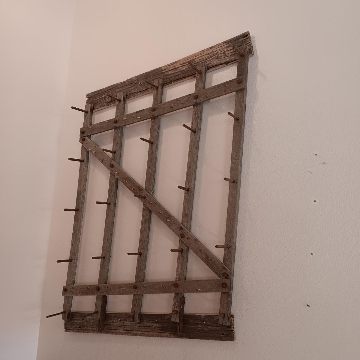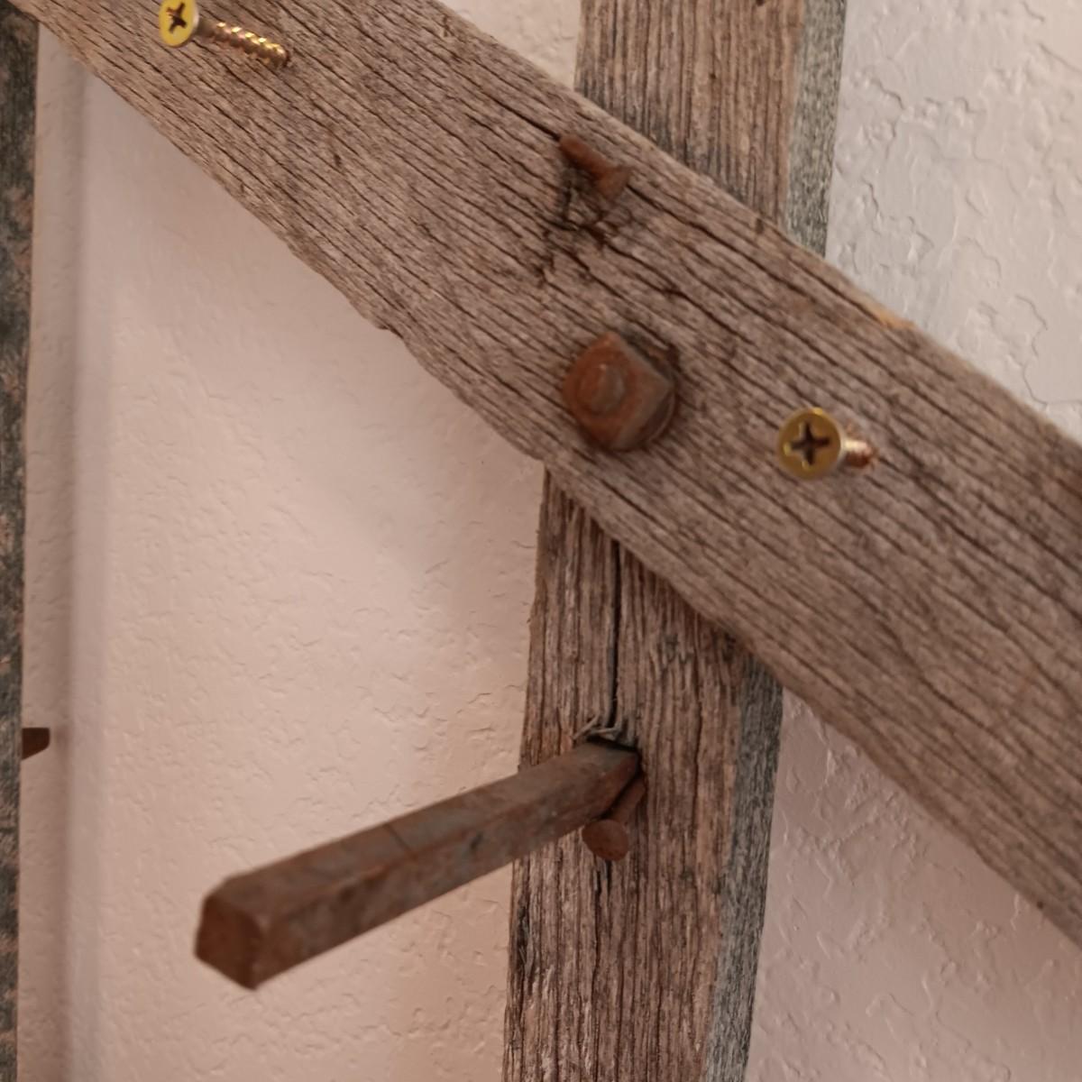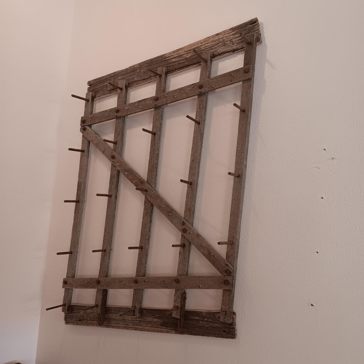 BARNWOOD IRON PEG BOARD WITH ANTIQUE IRON HOOKS