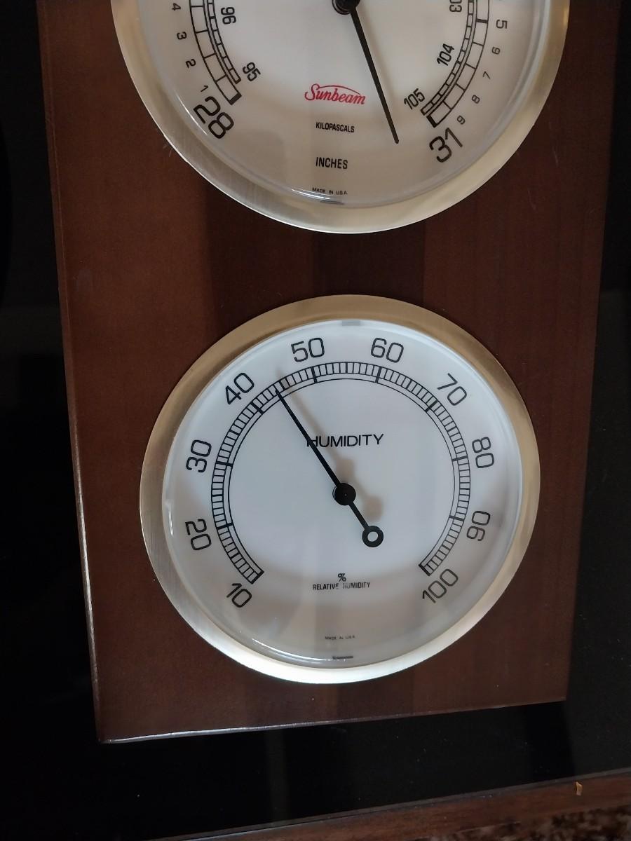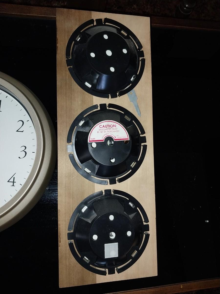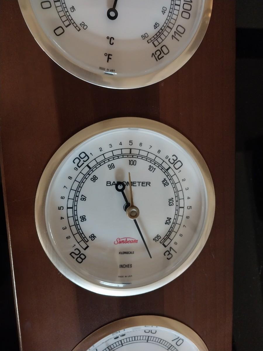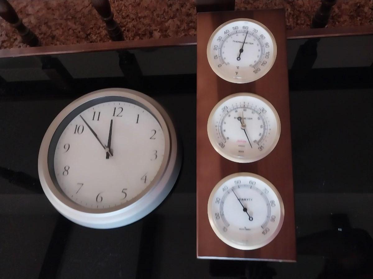 BAROMETER AND METAL FRAMED WALL CLOCK WITH A GLASS FRONT