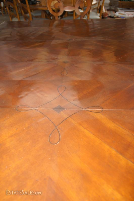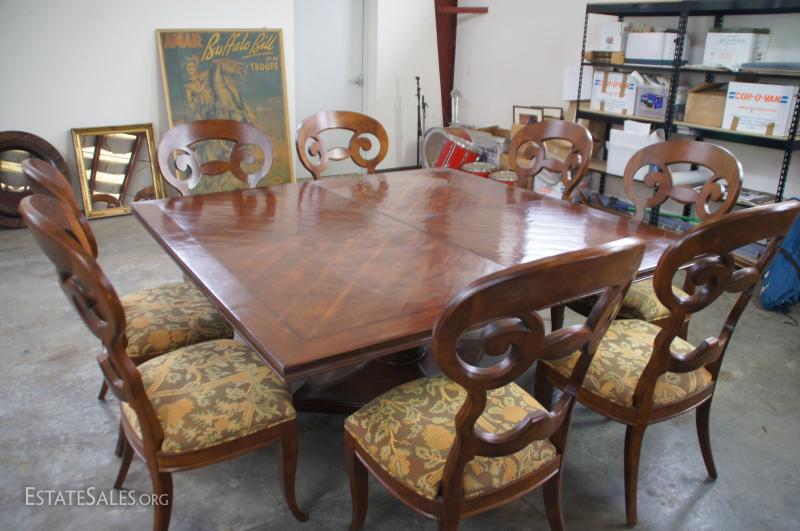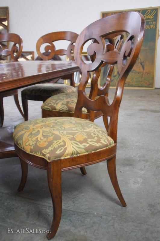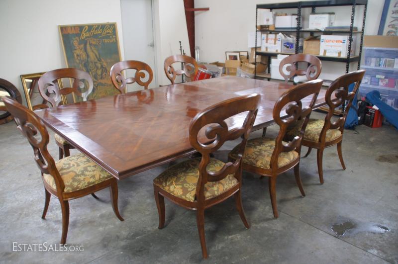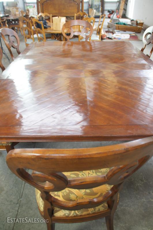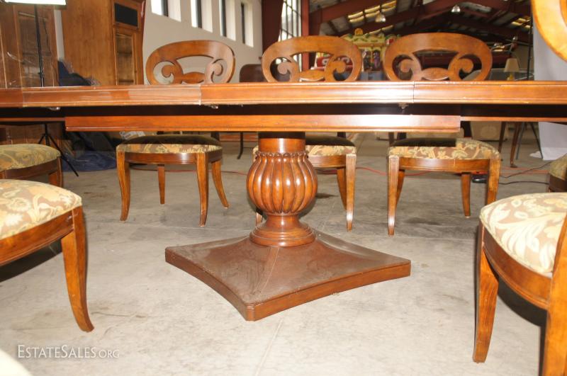Baroque style large walnut dining table + 8 dining chairs, contemporary