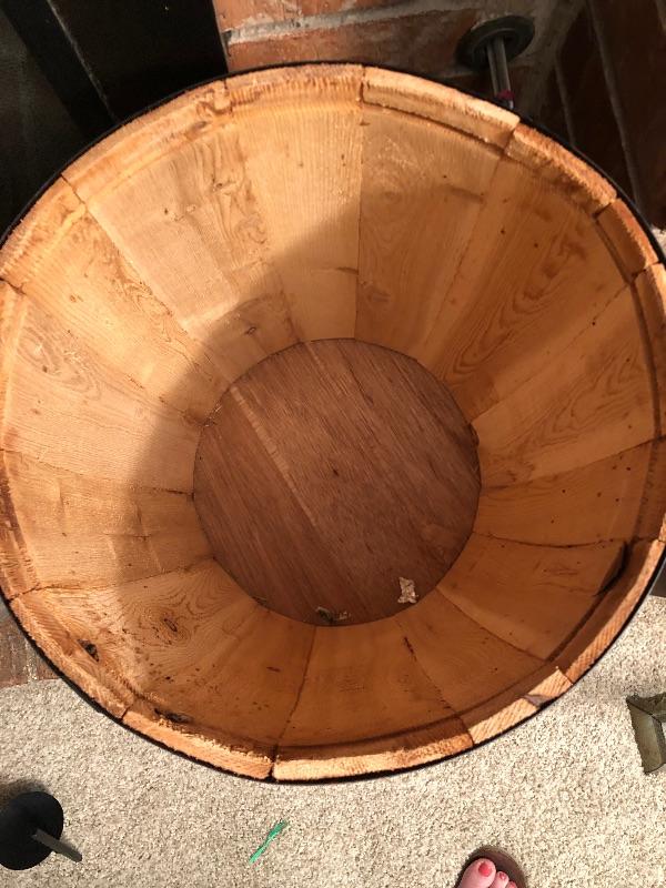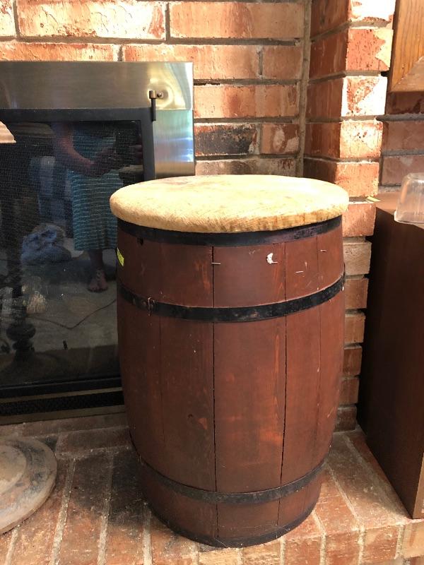 Retro wood barrel with lid. Could be used as a seat or coffee table