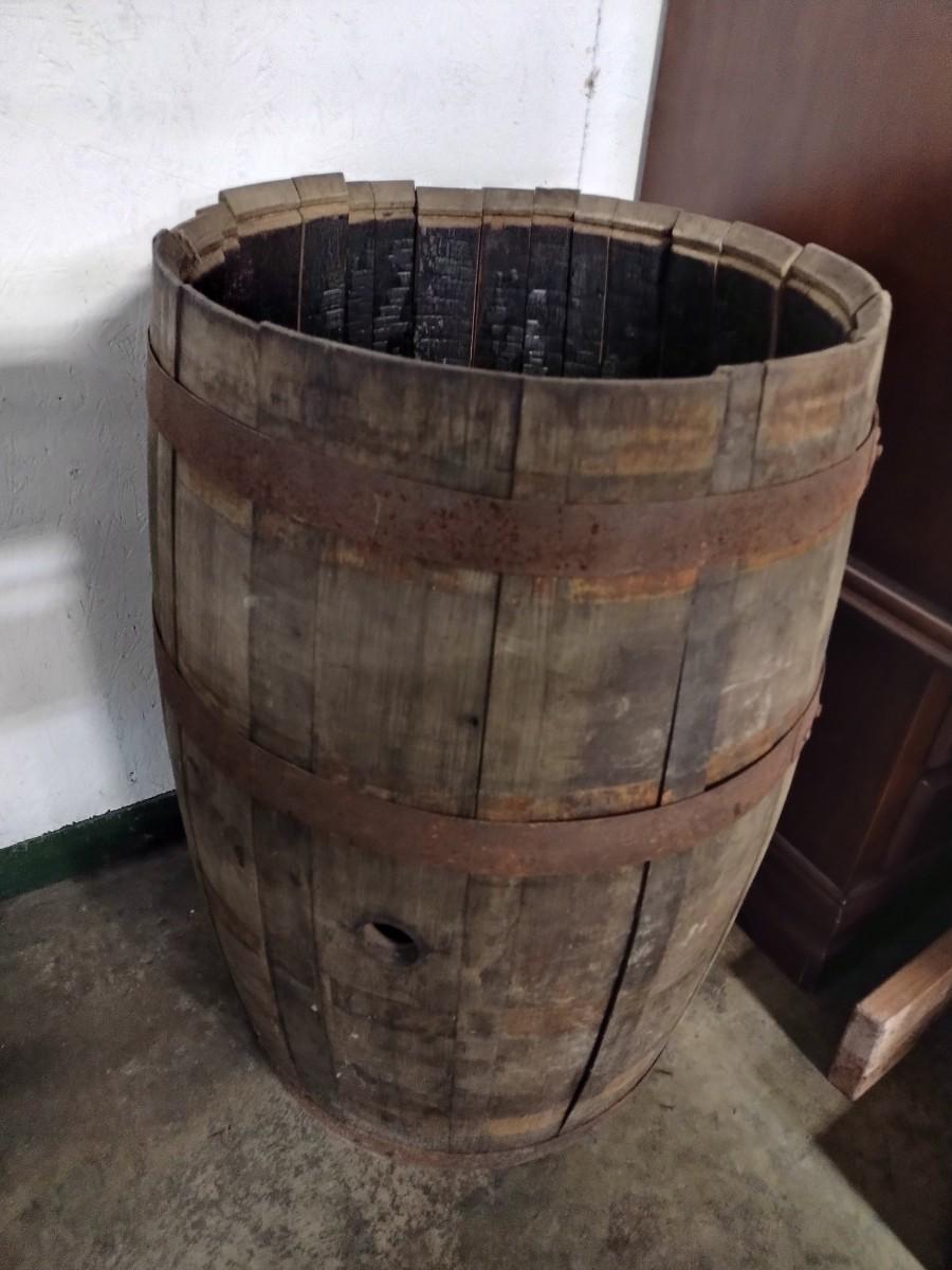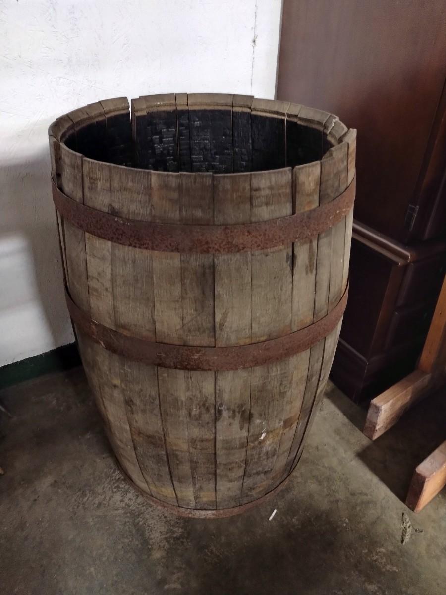 Vintage Oak Slat Whiskey Barrel with Charred Interior