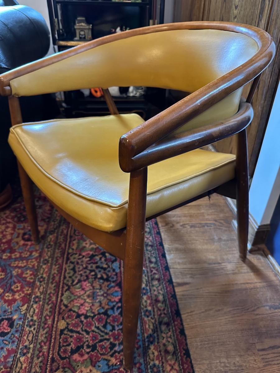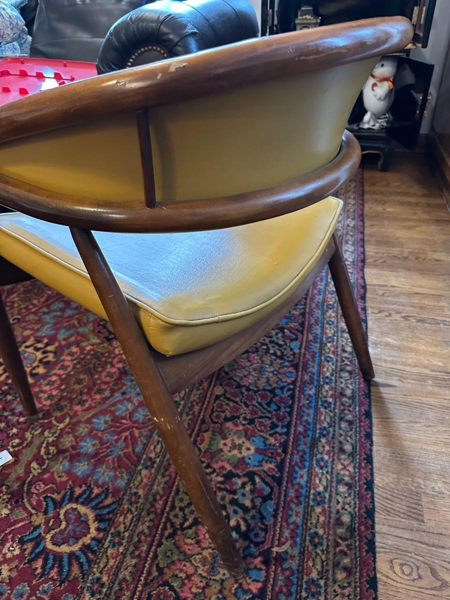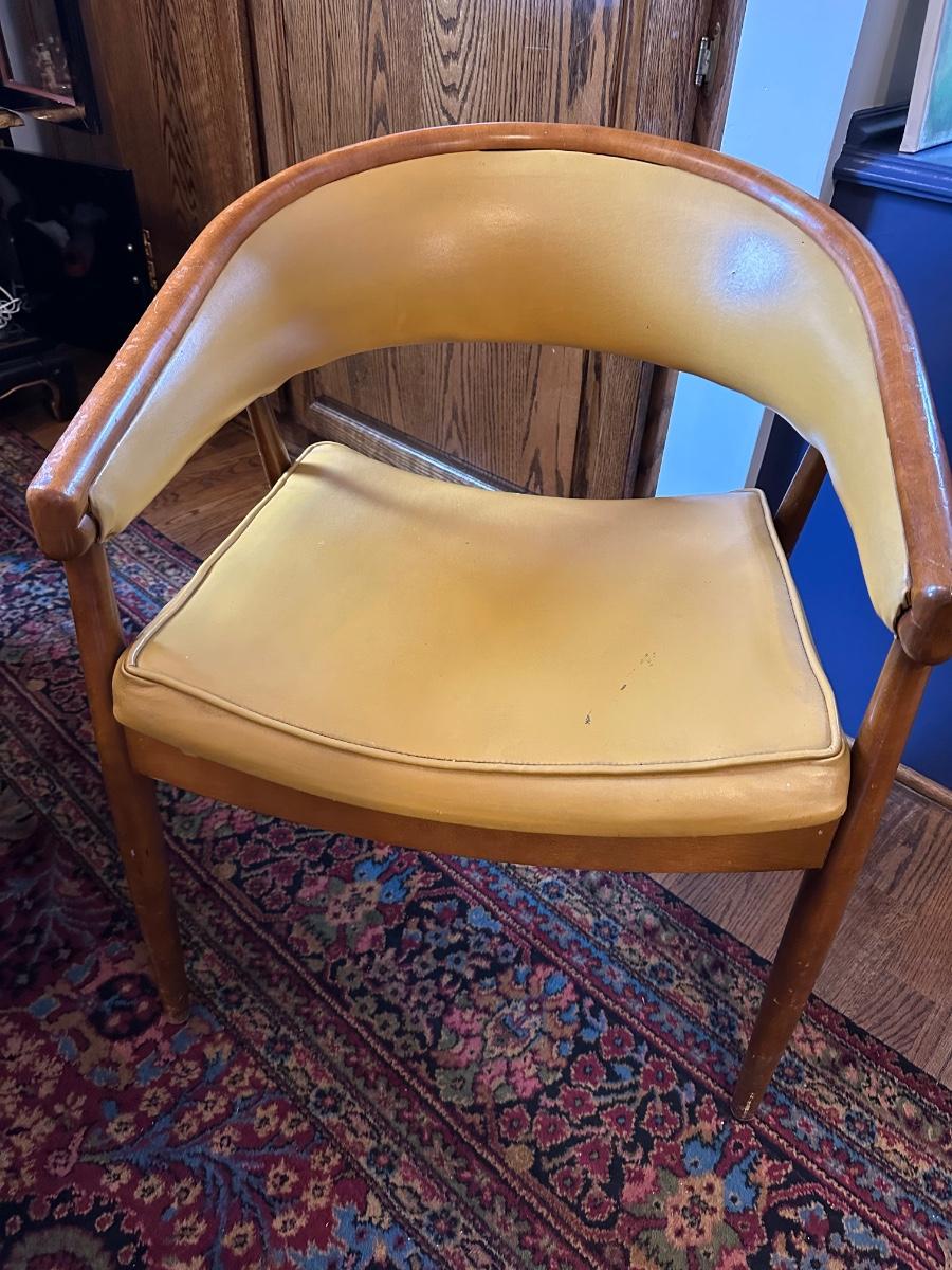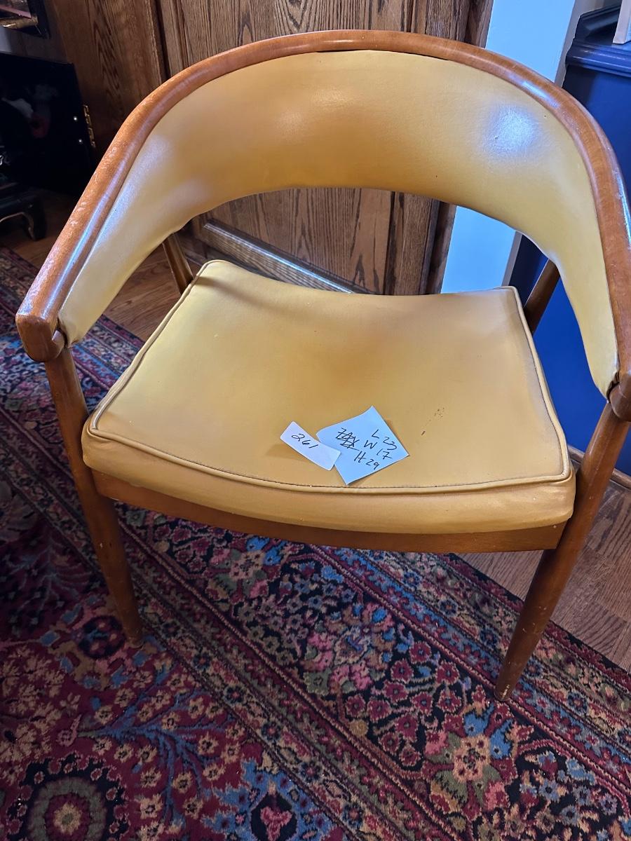 BARRELL BACK GOLD CHAIR, LEGS HAVE SCRATHES 23X17X29
