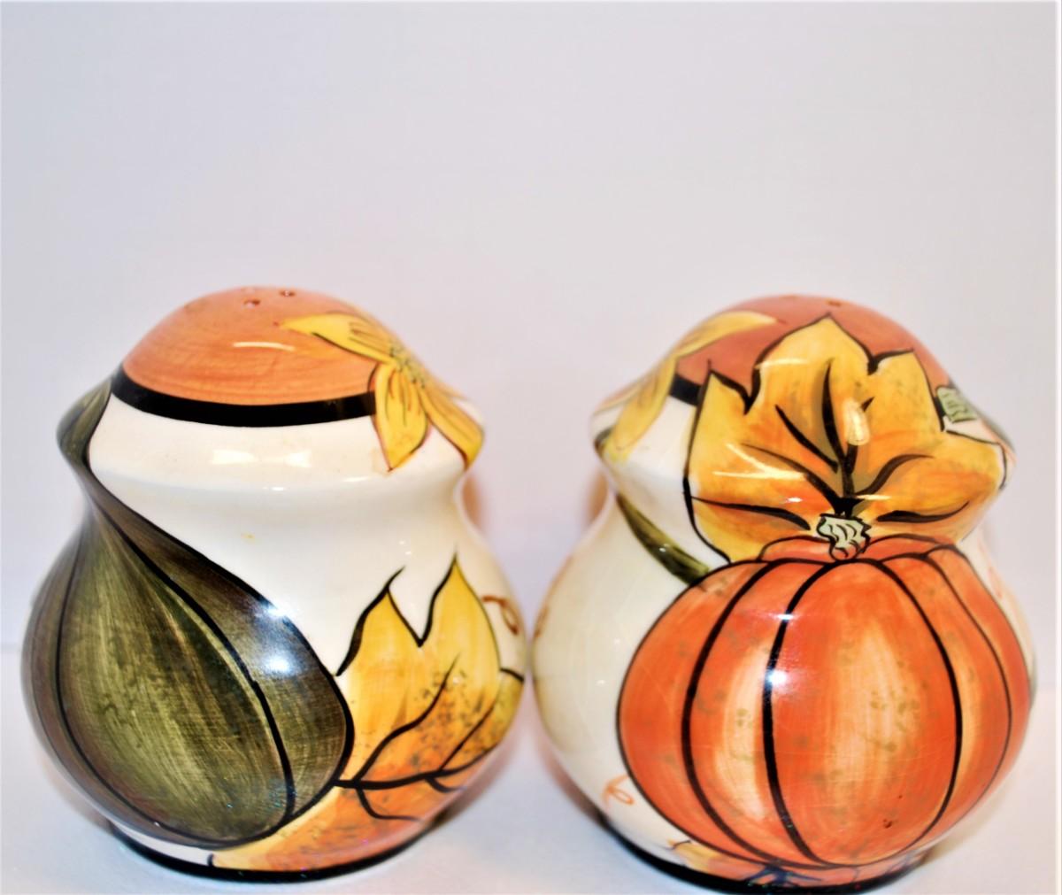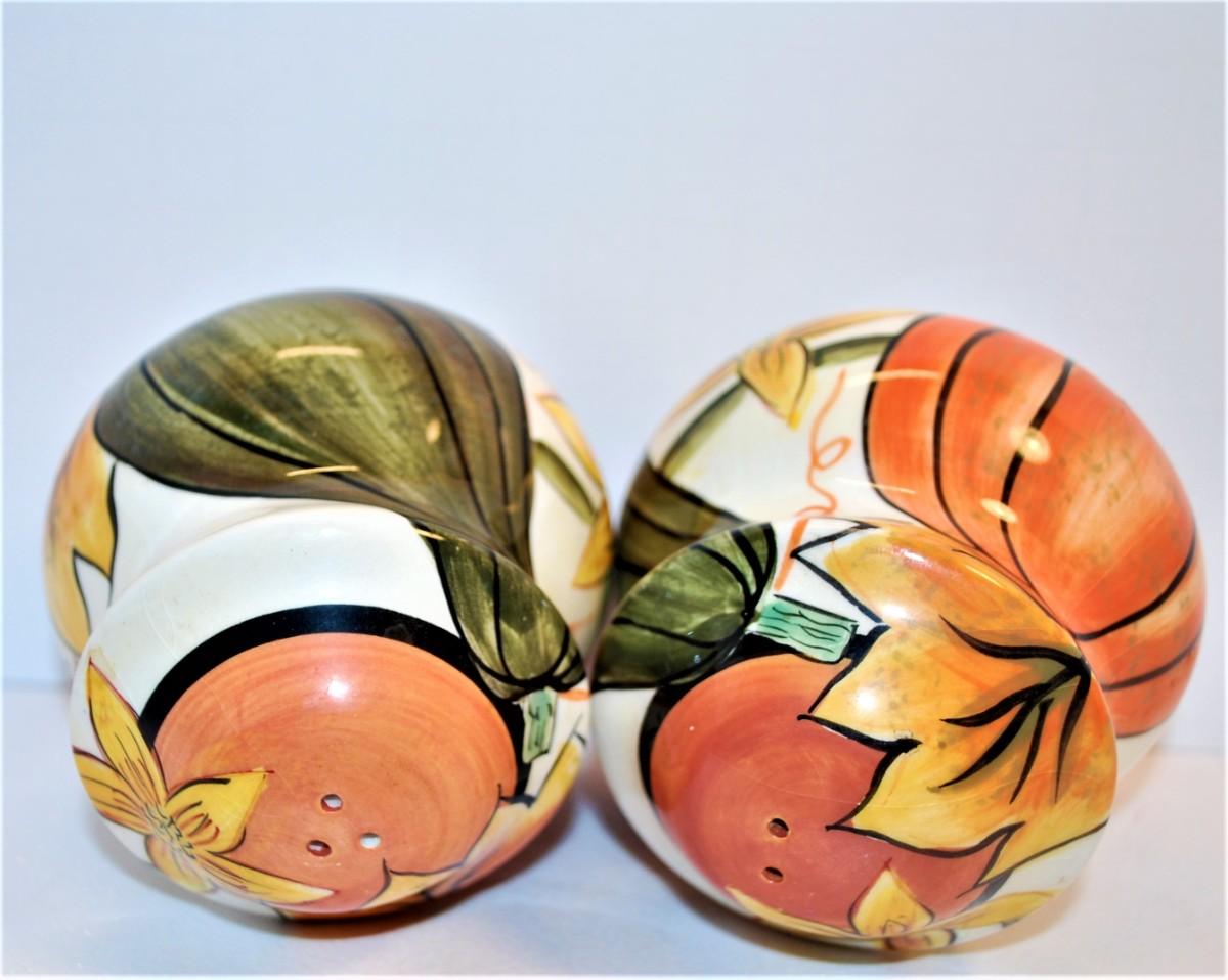 Barrel Shaped Set with Orange Pumpkins and Green Squash 3 1/4"
