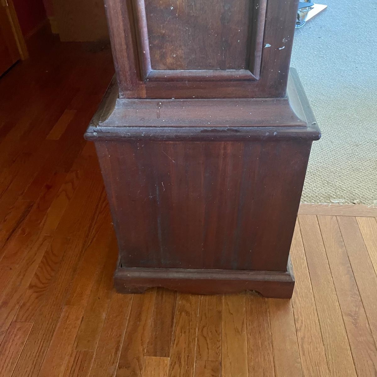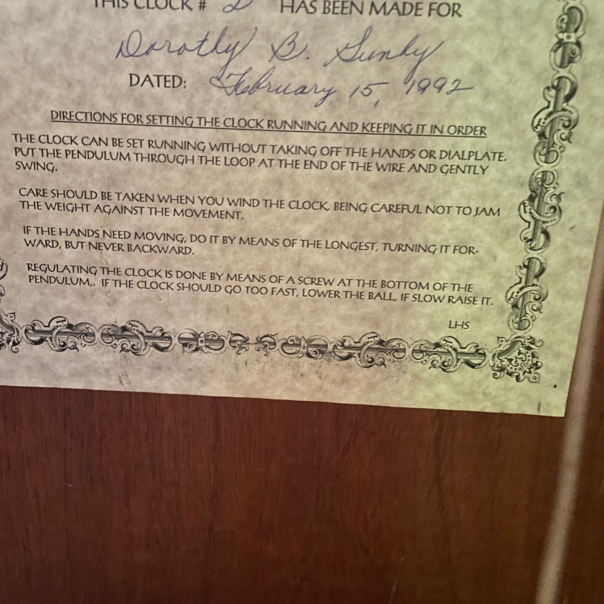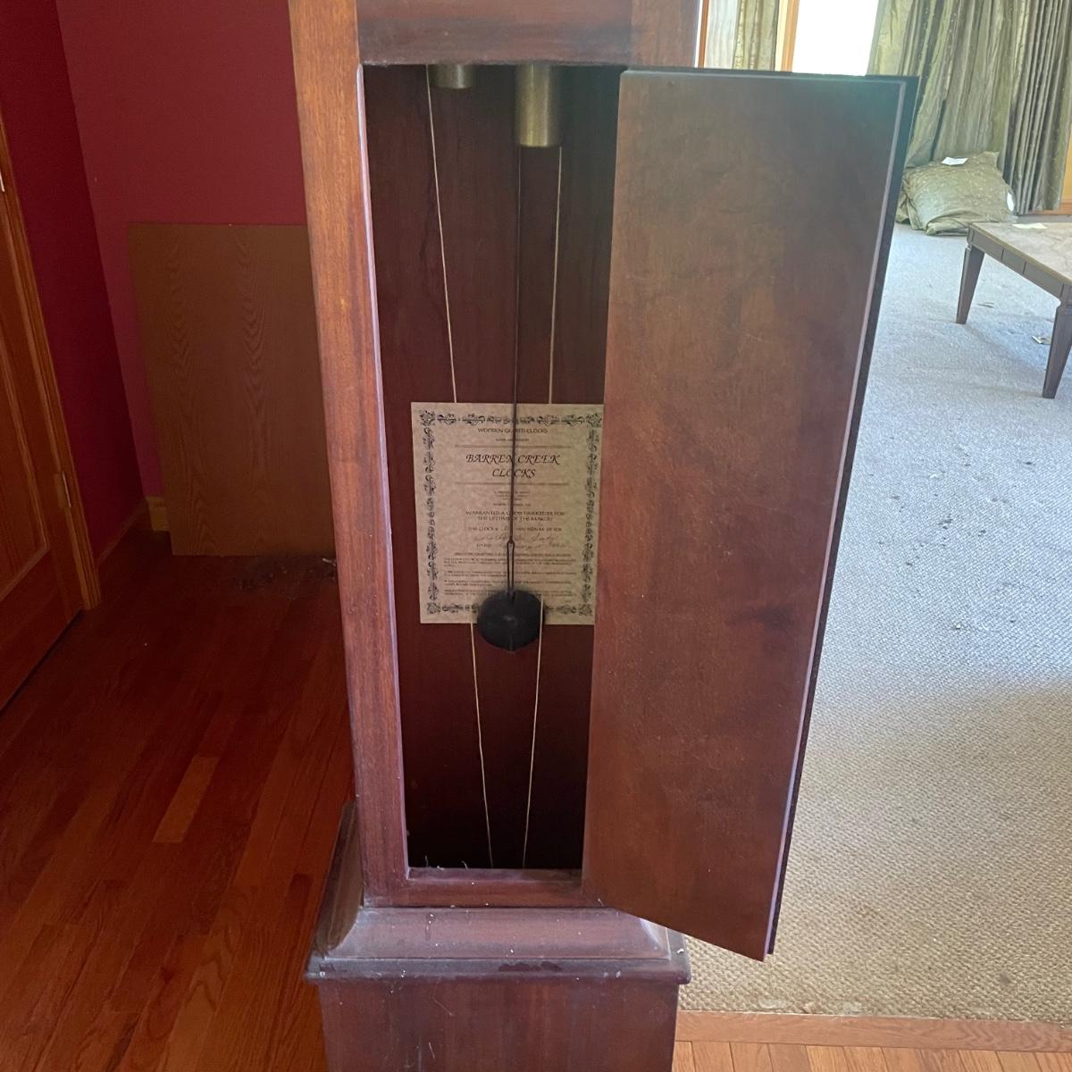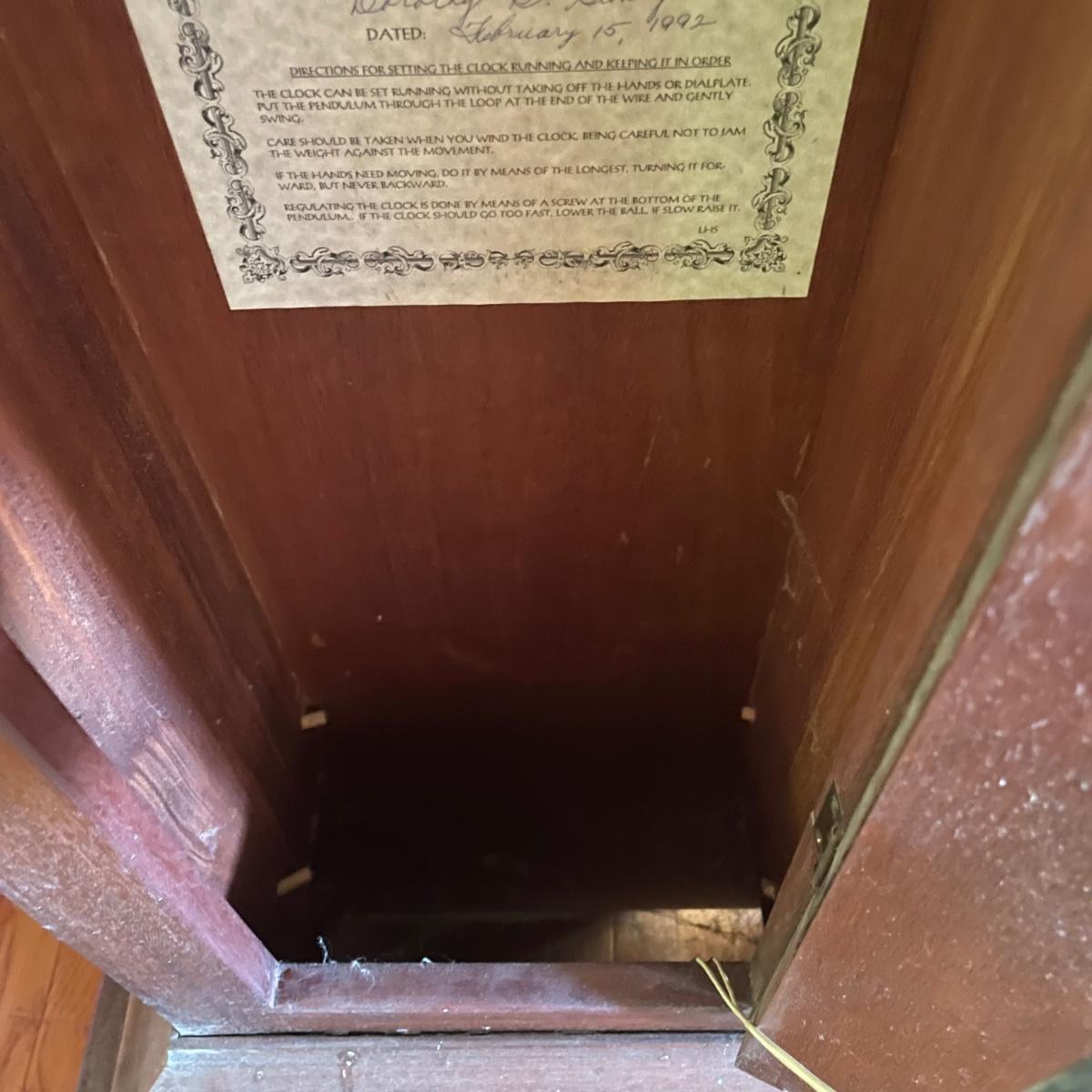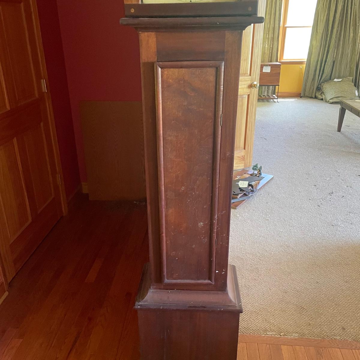 This Barren Creek long case clock is in good condition with just a few surface cracks on the clock face, see images. The chime works but the clock itself does not run, so it will need some work to get it up and running.