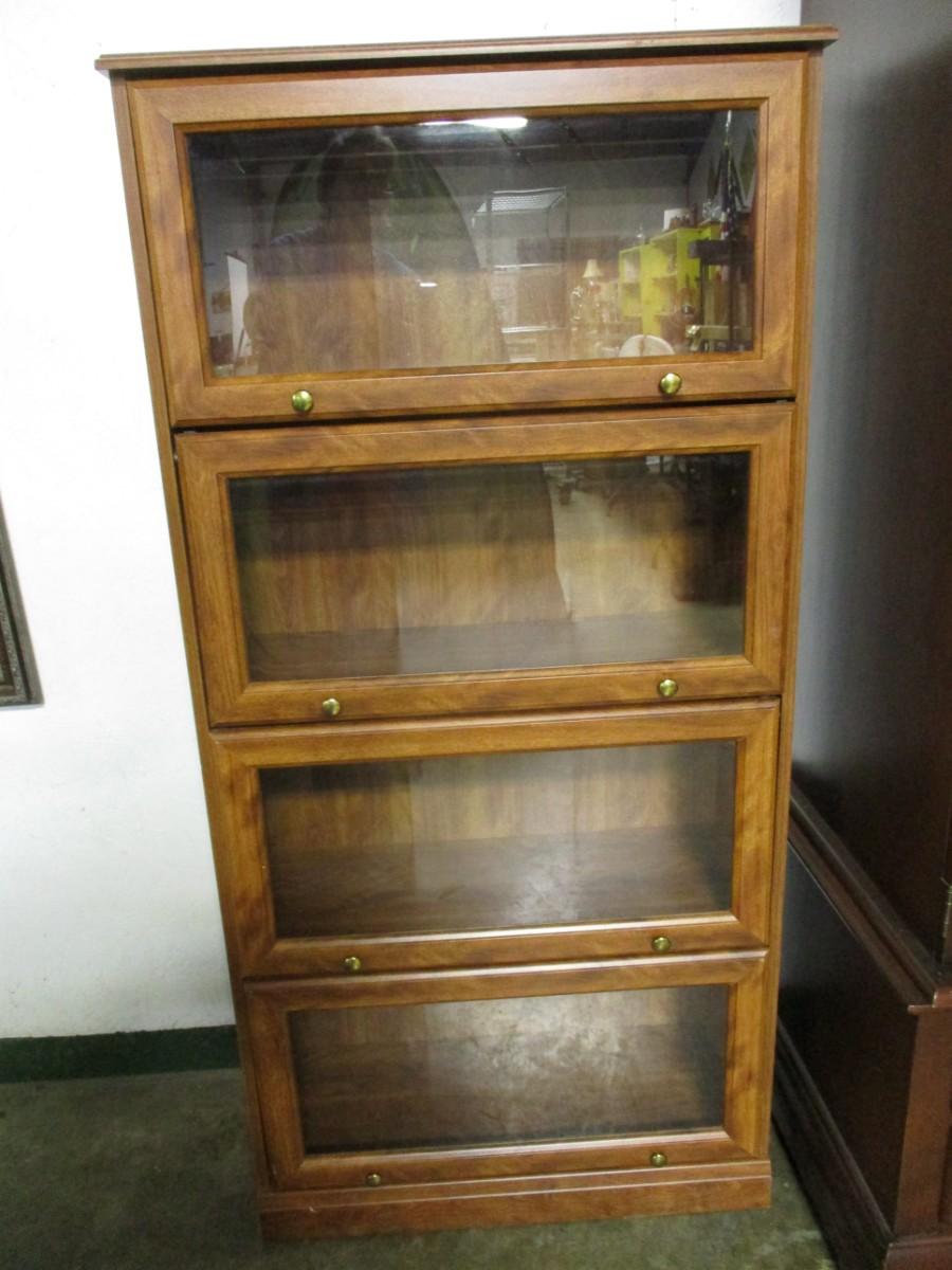 Oak Finish Four Compartment Barrister Cabinet Single Chest in Extremely Good Condition