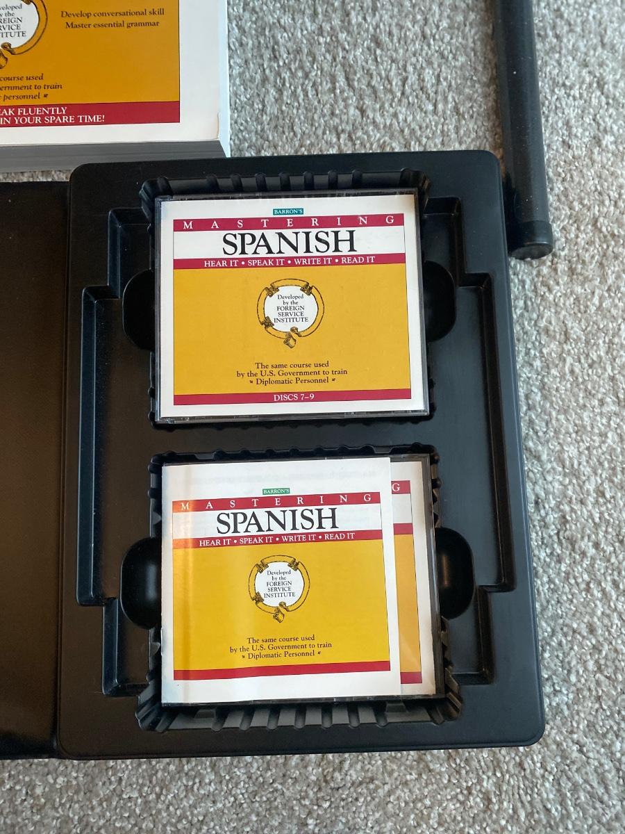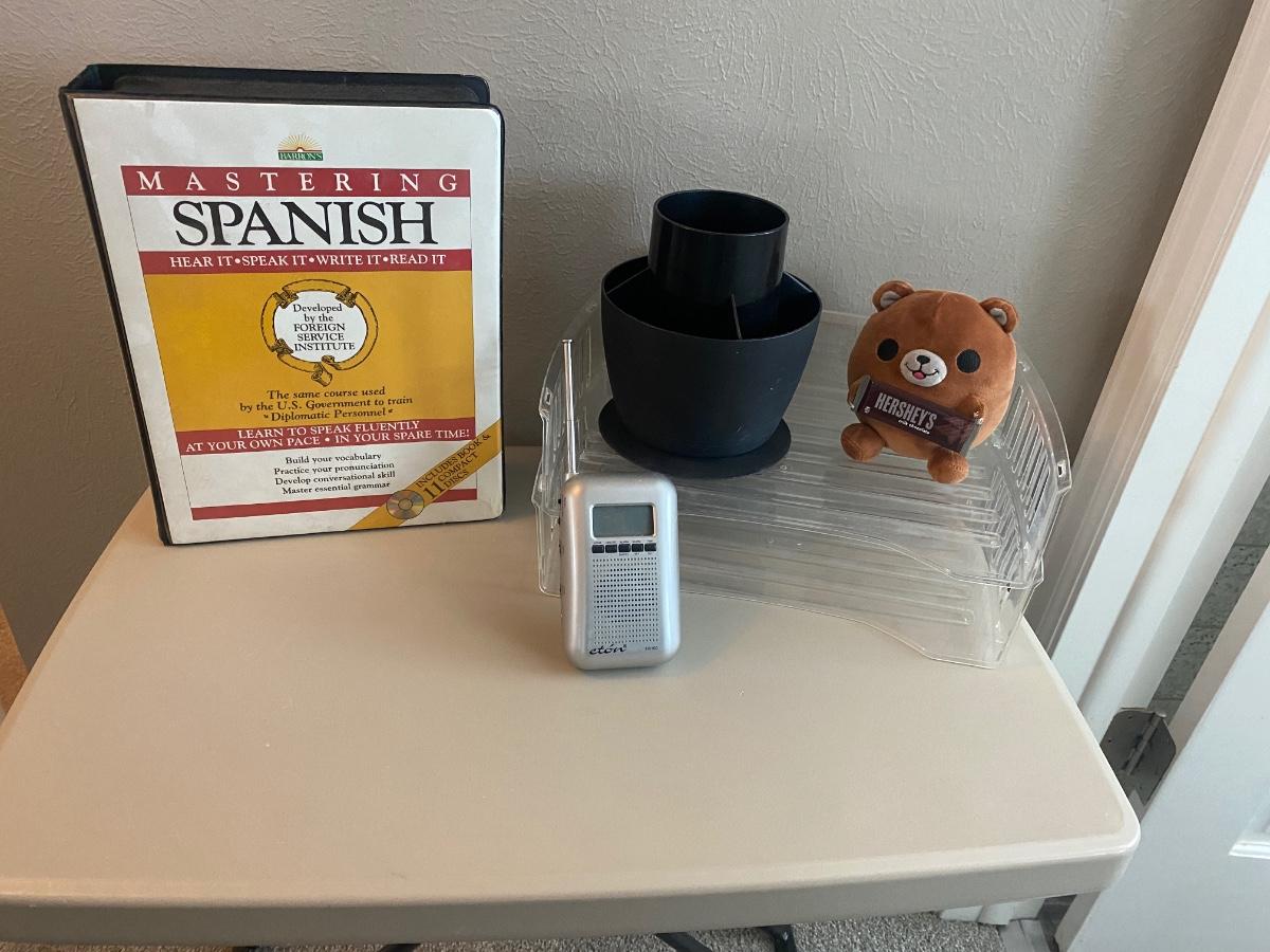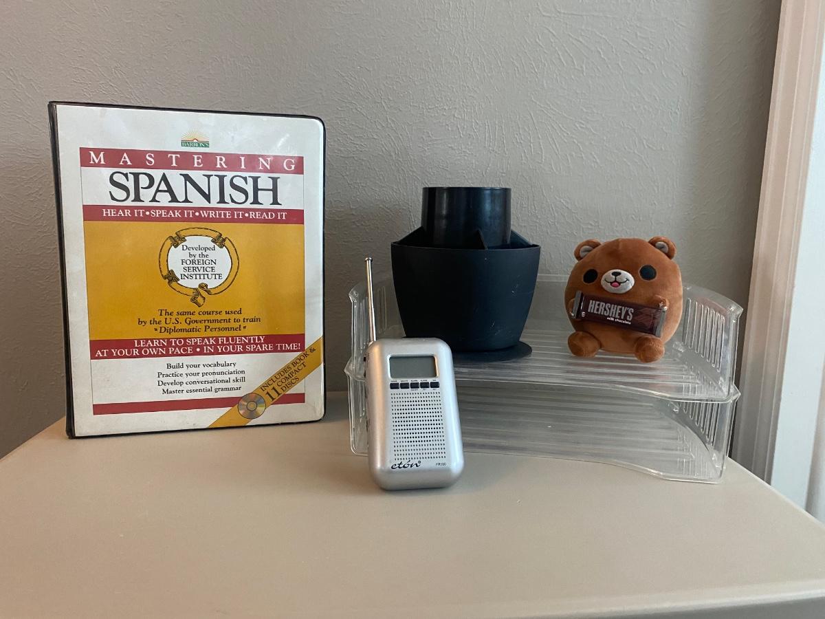 BARRON’S MASTERING SPANISH COMPLETE SET And A COOL PLUG-IN LIGHT & CLOCK TRANSISTOR RADIO AND MORE!
