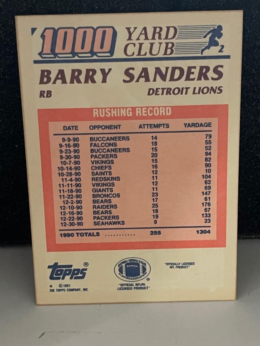 Barry Sanders 1,000 yard club Topps 1991