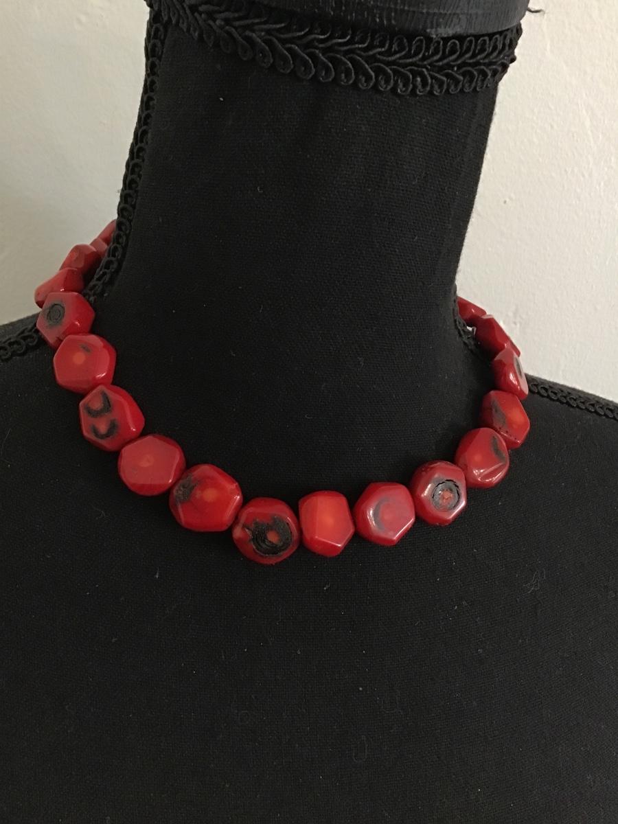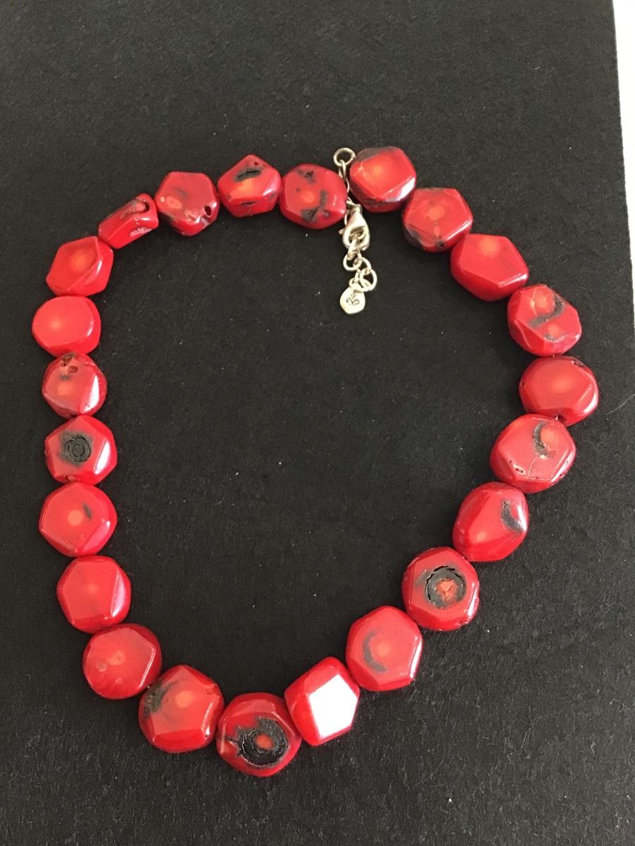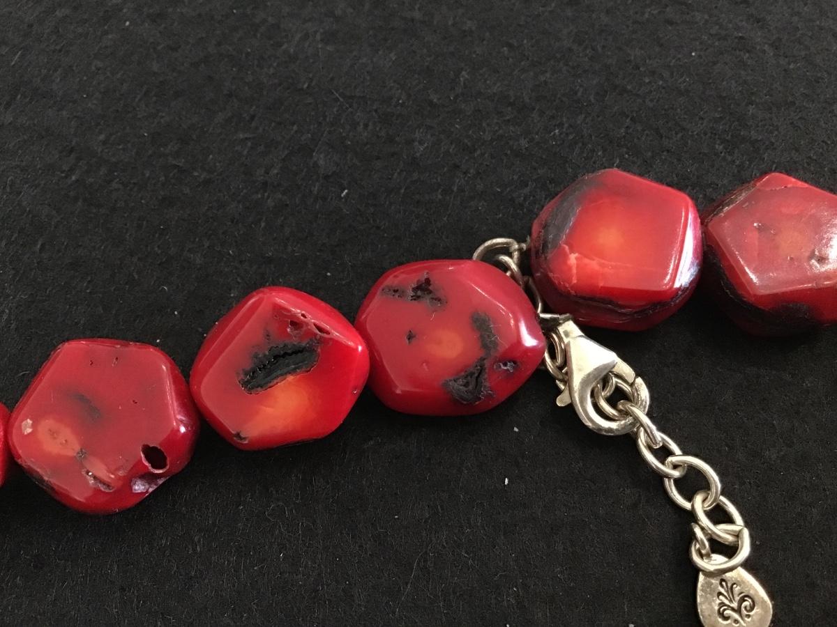 Barse Chunky Red Coral Necklace Sterling 925