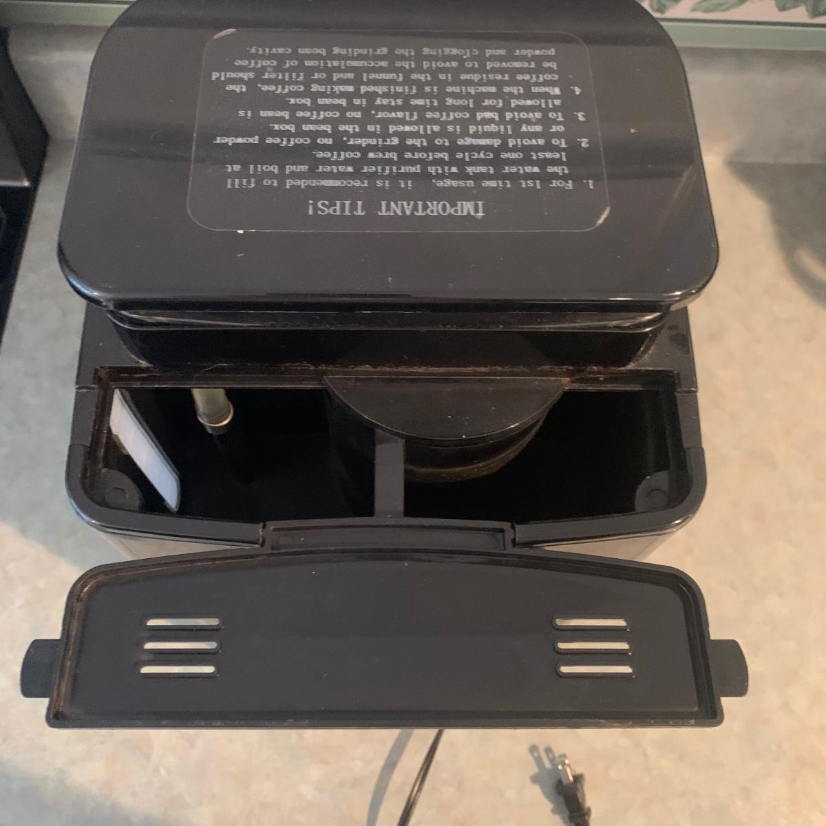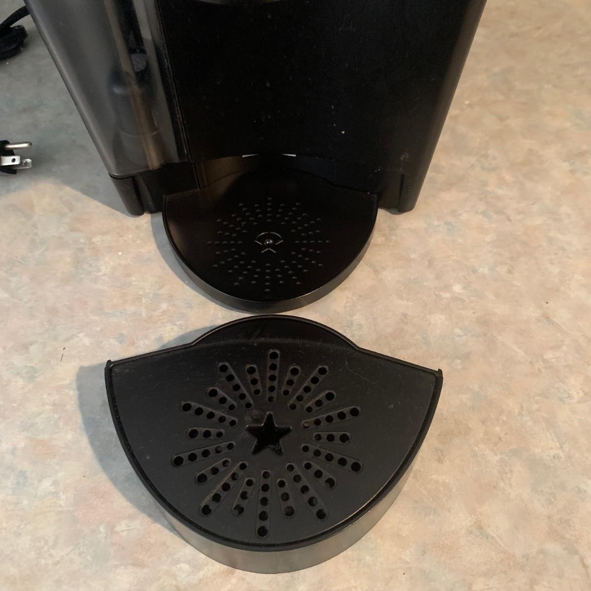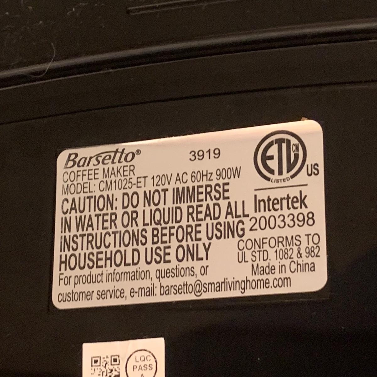 All things coffee! Included are: a Barsetto coffee maker, a Keurig coffee maker with rotating metal pod holder stand, a Crux coffee bean grinder, and a thermal carafe. All electric items powered on when plugged in. The Barsetto coffee maker has a built-in grinder; some coffee beans remain. This item measures 8.25” x 9.5” x 17”H.