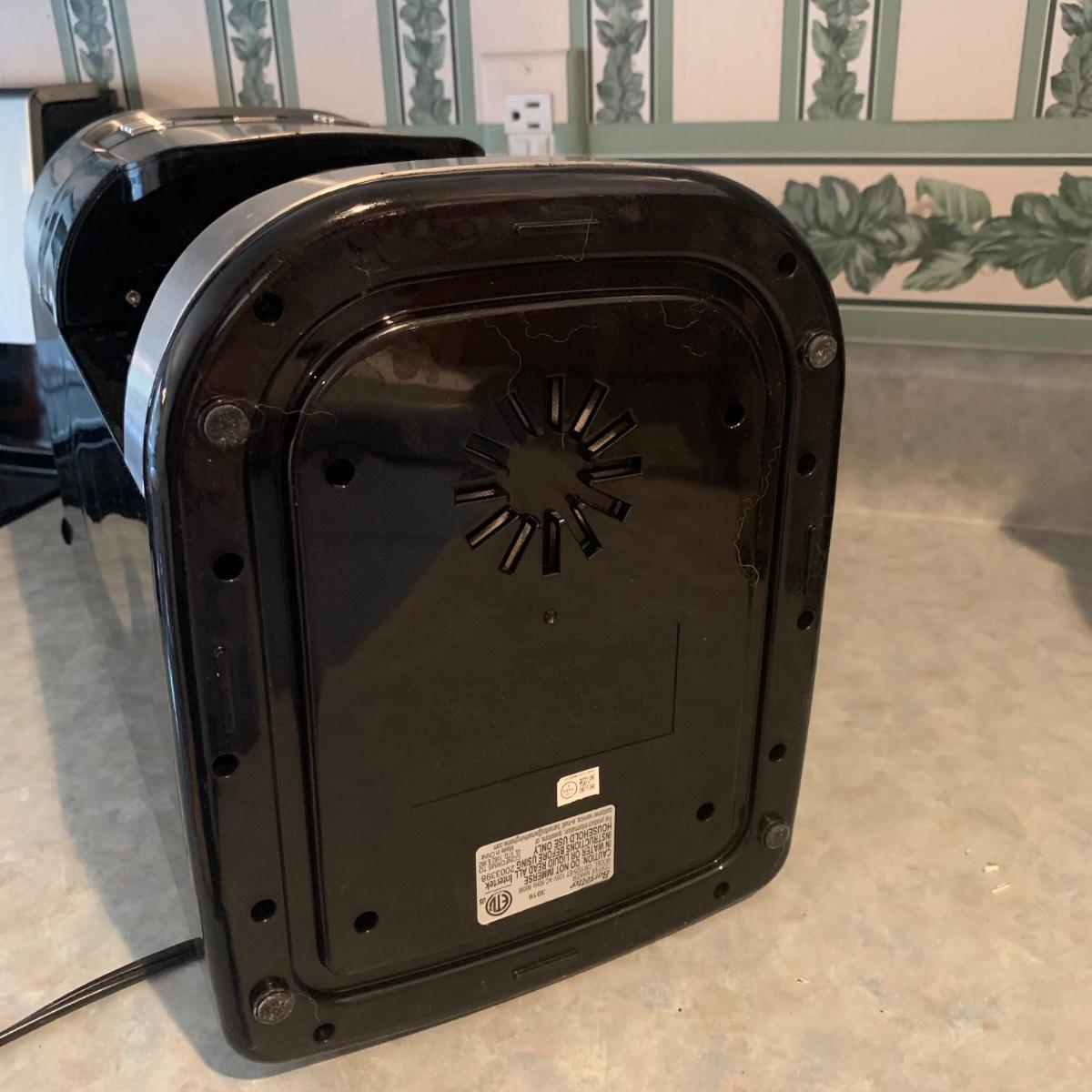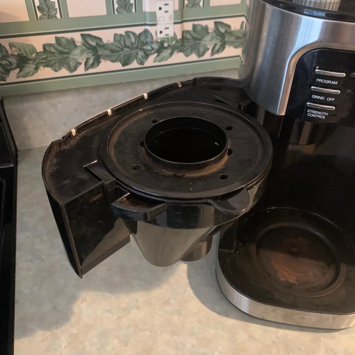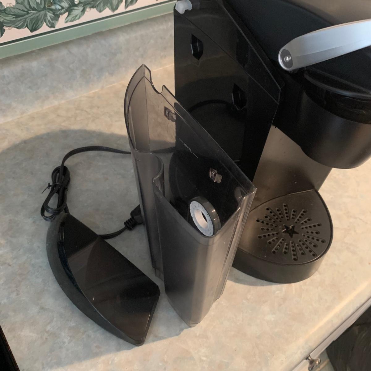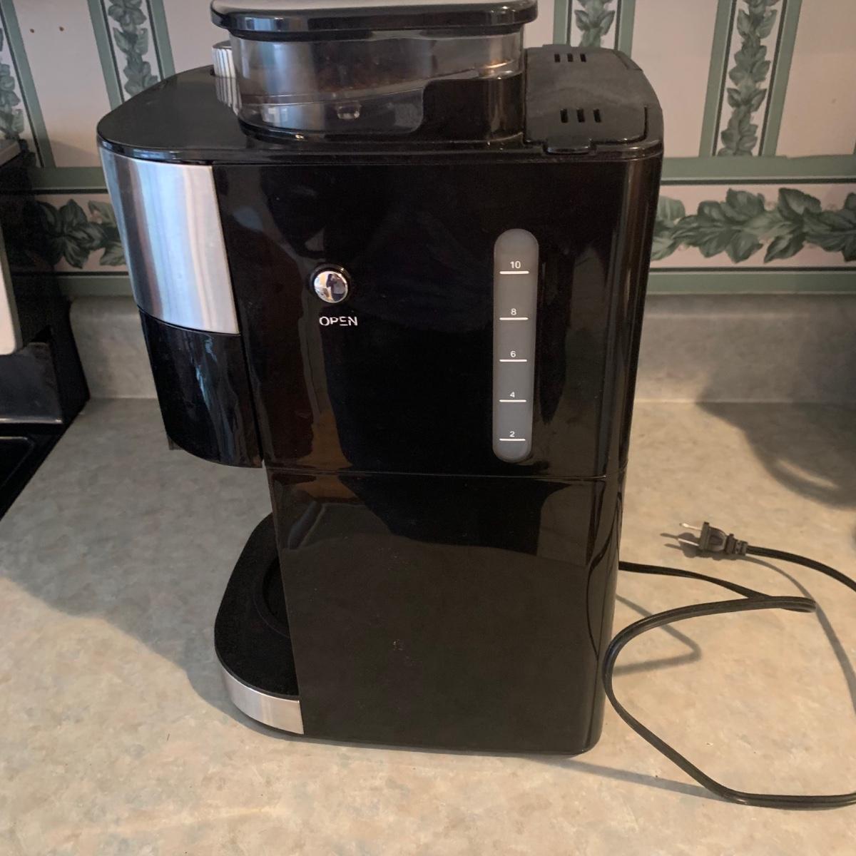All things coffee! Included are: a Barsetto coffee maker, a Keurig coffee maker with rotating metal pod holder stand, a Crux coffee bean grinder, and a thermal carafe. All electric items powered on when plugged in. The Barsetto coffee maker has a built-in grinder; some coffee beans remain. This item measures 8.25” x 9.5” x 17”H.